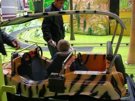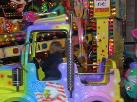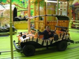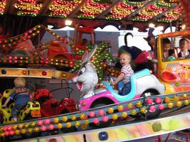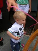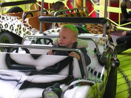 Zaterdag was het weer een superleuke avond. Na een heel lang middagdutje zijn we richting Antwerpen getrokken. Weer een héél fijn avondje sinksenfoor. Geweldig was dat!!! Eens daar hebben we eerst lekkere frietjes gegeten, want we hadden allemaal héél veel honger... en smaken dat dat deed. Heb ondertussen ook iets nieuws geleerd, na het eten was het drinken en voor het drinken was het "schol" zeggen. Plezier dat ik daarin had, maar voorlopig nog even oefenen met bekertjes en plastiek flesjes want een glas zou ik nog wel eens stuk kunnen proosten hihi... En dan was het plezier maken... Eerst hebben we alles een beetje afgezien en van het ideale weertje genoten, want eigenlijk was het een aangename zomeravond. Ik genoot dus met volle teugen vanop de eerste rij, vanuit mijnen buggy dus hihi... En ja natuurlijk heb ik veel op de kermis mogen zitten, het is maar één keer sinkenfoor en daar heb ik dan ook volop van mogen genieten. Mama begint zo stilaan minder bezorgd te zijn en me meer en meer te vertrouwe dat ik ne grote vent aan't worde ben. Dus ik heb zo eens wat anders mogen doen dan gewoon op de kindermolen te zitten. Eerst ben ik op safarietocht geweest met de auto's, plezant zenne, rijden met de auto's tussen de palmbomen. Na men eerste ritje gingen we weer even verder.. En ja als ik zo moet stoppen laat ik altijd even van me horen, maar dat is altijd snel voorbij en is iets dat ik nog moet leren, maar met verloop van tijd zal dat wel lukken. Daarna ben ik gaan vliegen, mama wist het eerst nog niet zo goed, bezorgd weer, maar toen ze zag dat ze mij kon vasthechten in die molen heeft ze me toch één vlucht gegunt... hihi en fijn dat ik dat vond, ben wel maar één keer de lucht in gegaan want wist nog ni zo goed hoe ik dat ding moest bedienen, maar vond het sowieso al een superleuke ervaring... Daarna ben ik nog eens op de gewone molen geweest, was zo euforisch dada aan't doen dat ik toch ni pardoes uit den tuut viel zeker, maar niks aan de hand hoor, geen builen, geen schrammetje, niks pijn, alleen ja iedereen had mij weer eens gezien hé hihi... Ons mama stond ook rap bij mij, maar kon er gelukkig om lache want het kwam ni echt door mijn apenkuren en had me ook helemaal geen pijn gedaan! En daarna kwam de grote lekkernij, we hebben een wafel met aardbeien en héél veel slagroom gegeten... lekker lekker!!! Ik ben dan samen met mama nog in een snelle molen geweest, plezant hoor zo eens iets samen met mama doen. Het was wel een snelle molen maar ik dierf het wel en vond het met momenten echt wel plezant, maar zonder mama zou ik het ni durven denk ik... dus thanks mama want dit heb ik ook weer eens mogen beleven. Dan was het nog even plezier voor de grote kinderen onder ons... hihi Johan en mama hebben nog een beetje in het lunapark rondgehangen en het schietkraam... en dan was het echt tijd om huiswaarts te keren want het was wel echt laat...