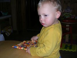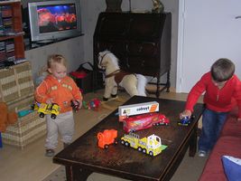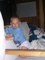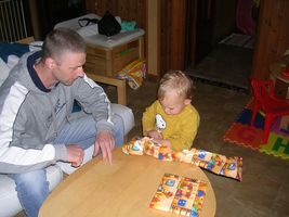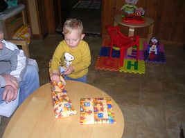 Mijn weekendje was héél fijn, het was zo al een heel klein beetje feest voor me. Vrijdag zag ik eindelijk mijnen dikke vriend terug... Ons mama haar ventje heeft een weekje in het ziekenhuis gelegen En eigenlijk vond ik dat niet zo fijn want ik miste hem wel. Dus jaaa ik was héél blij dat ik hem vrijdag terug zag en hij weer gek met me kon doen. Zo blij dat ik hem zaterdagmorgend toen ik wakker werd direct wou gaan knuffelen. Maar hij was al dada en dat snapte ik even niet zo goed, ben hem overal gaan zoeken: in de slaapkamer, de keuken, de badkamer, maar noppes Johan was wel echt dada, mama had gelijk en ze moest er best mee lache mij bezig te zien. Mijn ochtendritueeltje was plots veranderd want als ik anders smorgens uit men nestje kom begin ik direct achter drinke te vragen en nu zag ze mij als een kieke zonder kop het huis doorholle ... Maar hij was snel terug bij ons hoor, en ikke blij hihi... s'Avonds ben ik dan bij ons maa'ke dodo gaan doen want ons mama ging nog eens op stap. Ik was toch een beetje triest toen mama vertrok, zei 'mama weg' en moest toch wel even wenen, maar heeft maar 5 minuutjes geduurd. Sinja heeft dan met mij wat gespeeld en ze wist dat ik gek was van bumba dus heeft me op de laptop filmke van bumba laten zien en dat vond ik natuurlijk geweldig. Maar toen het filmke gedaan was zei ik toch weer 'bumba weg' en ook 'mama weg' dus miste haar echt nog wel zenne maar moest ni meer wenen dan. Jaja kan ik wel ne flinke vent zijn als ik wil, ben flink gaan slapen, s'morgens flink boterhammekes gegeten... en superblij dat ik ons mama terug zag :) hihi... Begon natuurlijk wel weer de clown uit te hange toen ik mama zag, maar ja was eigenlijk ook een beetje moe want het was stilaan tijd voor men middagdutje. Eens thuis was het eerst al een heel klein beetje feest Maandag word ik 2 jaar en toen we weer thuis kwamen lagen er al een paar kleine cadeau'tje klaar hihi superfijn want nu kan ik ze al alleen opendoen. Spelen was voor later, want men bedje riep zo stilaan. En eens ik weer wakker werd had mama voor ons allen een lekker taartje meegebracht voor men verjaardag. Maar was nog ni zo goed wakker dus kaarsjes uitblaze was er nog ni bij, had er nog ff geen zin in, zal voor één van de volgende feestjes zijn, want ja er volgen nog wel wat feestjes voor men verjaardag hihi PLEZANT hé... t'Is alleen te hopen dat ik wat flinker ben want s'avonds heb ik het toch weer even uitgehangen. Kan soms zo een flinke vent zijn, toen mama en Johan naar een tuut waren gaan kijken ben ik eigenlijk héél flink geweest. Moest wel even geduld hebben want het duurde daar wel even bij den tuut maar al bij al ben ik toch flink geweest. Maar eens we thuis frietjes gingen eten ging het weer fout. Onozel doen en spelen met het eten ipv flink te eten. En ons mama heeft veel geduld, maar ineens was het gedaan en vloog zonder pardon men bed in... Zal moeten leren luisteren, benieuwd of dat goed gaat komen... je zal het hier allemaal nog wel lezen...