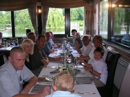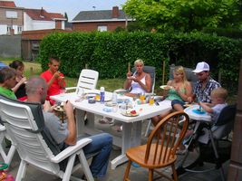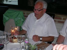 Vandaag was het een superspeciale dag. Vake Ruisbroek werd vandaag 75 jaar! Dat begint al te tellen hé... Mjaja drie kwart eeuwtjes oud, als dat geen reden is om te feesten hihi en dat hebben we dan ook gedaan We zijn dit speciaal gebeurtenisje samen met de familie gaan vieren in 't Veerhuis in Weert. 100% was ik nog niet, op een gegeven moment had ik echt wel een beetje pijn aan de oortjes. Maar van die gelegenheid heb ik ook een beetje geprofiteerd. k Had het wel door, dat iedereen ochére ocharme aan het zeggen was op een gegeven moment. Johan had ik daar alvast ni mee liggen toen ik het ff begon uit te hangen en ni flink was aan tafel. Uiteindelijk heb ik met de kids van de familie toch nog men zinnen verzet in het speelhoekje, superfijn en ik had dan ook ineens gene pijn... dus hij had nog gelijk ook, mjaja ben soms wel ne sloeber. Maar soit ik wou hier eigenlijk ook nog een beetje over ons vake Ruisbroek vertellen. Vake Ruisbroek is mijn overgrootvader, dat kunnen er ook ni veel meer zeggen dat ze dat nog hebben hé. Ikke wel hoor, en het is zelf nog ééntje dat goed bij de pinke is en zelfs fameus met zijnen tijd mee. Ons mama moet er soms mee lache, wij hebben ni zo een saai vake, wij hebben een vake dat geregeld op de computer zit te tokkelen om zich zo bezig te houden met zijn favoriete bezigheden. Hij gaat graag naar de koers, vooral naar den Danny Verelst zien dan, en daar zoekt hij dan zo wat vanalles vanop op de computer. En verder jaja een modern vake, durft hij nu en dan zelfs eens een cd'tje te branden. Ben zeker dat zelfs de jeugd dit ni allemaal kan, sommige wel, maar toch ni allemaal... Dus dan mogen we toch wel zegge dat we een supermodern vake hebben hé! Ben er in ieder geval fier op mijn vake. En ben blij dat we hem toch hebben kunnen verrassen op zijn speciale verjaardag. Mama had voor hem een speech gemaakt, een beetje ludiek over het verloop van zijn leven... is zo eens iets anders hé, en mama doet dit graag en kan best wel leuk rijmen. Verder had vake laten vallen dat hij graag een nieuwe muziekinstallatie wou voor thuis, dus de familie hebben hem aangenaam verrast met een cadeaubon van de saturne zodat hij zijn nieuw machien zelf kan gaan kiezen... Dus binnenkort zal de muziek daar mooi klinke in de living. Op het einde van de avond werd hij nog aangenaam verrast met zijn lievelingstoetje, er was zelfs vuurwerk bij. En dan was het voor iedereen bedtijd, want het was ineens heel laat! Hopelijk heeft ons vake een superfijne verjaardag gehad. Wij hebben er alleszins van genoten. Nog ééns een dikke proficiat van ons!! Dikke zoen x