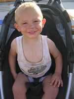 Maandag ben ik 2 jaar geworden! En vandaag hadden we dus weer ons afspraakje met Kind & Gezin. Ons mama viel daar van de ene verrassing in de andere. En moest ondanks men eigenzinnig karaktertje toegeven dat ik echt wel een flinke rakker aan het worden ben! Ik ben ondertussen 86,5cm groot en weeg 13kg, zoals het hoort dus. Maar verder kreeg ze te horen dat ik op alles voor sta voor men leeftijd. De dokter had zich van kindje vergist en begon met mij allerlei schooltestjes te doen. Ons mama keek maar verwonderd toen ze hem bezig zag maar nog meer omdat ik alles mooi meedeed. En de dokter was verbaast toen hij informeerde dat er met mij zeker geen problemen op school waren en te horen kreeg dat ik helemaal nog niet naar school ging en nog maar 2 jaar was. Ik kon alle testen nog eens opnieuw doen want hij wou natuurlijk zeker zijn dat ik echt wel alles flink kon. Maar jaja ook een tweede keer slaagde ik feilloos in alles. Ik moest een toren maken met blokjes, blokjes in het juiste gaatje steken, dan kreeg ik een paar foto's voor men neus en als de dokter een woord zei moest ik de juiste foto aanduiden, woordjes nazeggen... en jaja ik had alles juist! Ons mama heeft nu van de dokter de job gekregen mij tijdens de vakantieperiode op het potje te leren gaan. En ondertussen is er een brief onderweg naar school om mij in september al te kunnen laten starten. Dus zoals het er nu naar uitziet en als mama er in slaagt mij op het potje te leren gaan kan ik in september al men boekentasje pakken en richting school vertrekken. Flink hé!! Ons mama was wel fier op me maar vertelde de dokter ook dat ik soms een minder flinke vent ben en een eigenzinnig karaktertje heb. Daar had de dokter dan weer een oplossing voor. Er is weer iets nieuw bij Kind & Gezin, net zoals "de Nanny" op tv hebben ze ook "een nanny" bij Kind & Gezin. En ons mama vond het niet zo een slecht idee met haar eens een afspraak te maken. Het is nu niet dat ik een stoute jongen ben of er problemen zijn, maar ik heb zo men eigen willetje en dan kan je beter voorkomen dan genezen. Zij zal enerzijds ons mama leren van mij een flinke vent te maken en mij goed te leren luisteren en anderzijds gaat zij mij mee helpen schoolklaar te maken tegen september hihi dat is goed nieuws hé! s'Avonds thuis heeft mama nog wat met me gespeeld en een paar spelletjes zoals de dokter gedaan hihi ja nu ze het weet vind ze dat natuurlijk leuk. En dan kwam de zware test van de avond, namelijk luisteren en flink stilzitten want mama ging mijn haartje knippen. En/of ik flink was, ik ben mooi flink blijven zitten want vond dat haartjes knippen eigenlijk wel plezant. Ik heb nu terug een kort kopke se en kan men haartjes nu zelfs in piekjes omhoog zetten. Was zo fier als ne gieter als ik mijne nieuwe look in de spiegel zag en voor de foto kan ik dan ook alleen maar onozel doen hihi...