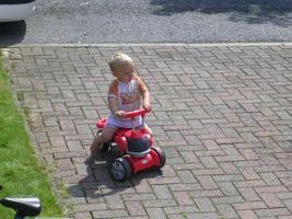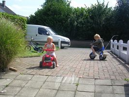 Afgelopen week hebben we eigenlijk niet veel meer uitgespookt. Dinsdagavond is mama ziek thuisgekomen, een paar kliertjes ontstoken en 2 flinke oorontsteking. Dus voor de rest van de week lag ze ko op de zetel. Ben gelukkig héél flink en lief voor de mama geweest, maar ja veel pret kon ik met haar ni beleven. En dat hebben we vandaag weer ingehaald. Sinds gisteren voelt mama haar weer een beetje beter, ze wou het toch nog een beetje rustig aan doen, dus zaterdag hebben we gewoon in de tuin van het goede weer genoten. Ik mocht mee plantjes gaan kiezen en die hebben we dan samen in de tuin gepland. Dat vond ik ook al reuze. Maar vandaag kon de pret niet op. De 'Ronde van België' vertrok hier in Buggenhout dus samen met mama hopla naar daar om dat koersgebeuren eens van kortbij mee te maken. Superfijn vond ik dat. Terwijl mama oog had voor de bekende renners, was ik vooral gefascineerd door al die auto's en moto's. Ze heeft vandaag ook ontdekt dat ik zot ben van Sammeke Goris. Toen hij kwam optreden moest mama me echt op het muurtje zetten dat ik Sammeke goed kon zien en verder stond ik te shake op zijne feestmuziek. Jaja heb me rotgeamusseerd en heel wat afgelachen! Vond het geweldig, we hebben de renners dan nog één keer voorbij zien rijden, toen reed sven nijs nog helemaal vooraan en Tommeke Boonen helemaal achteraan. Maar ikke, jaja ik had weer alleen oog van de moto's en auto's die voorbijvlogen Naar de koers gaan zien noemen ze dat dan, ne koereur zal ik dus duidelijk ni worde...