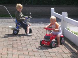 Ook voor ons was het afgelopen weekend een verlengd weekendje... en uiteraard hebben wij weer niet stil gezeten. Een heel klein beetje zijn we al met de verhuis bezig. Zo hebben Johan en mama zaterdagmorgend de tijd gemaakt om een nieuw salon te gaan kopen voor het nieuwe stekje. Een zwart/grijs lederen hoeksalon hihi en blij dat ze ermee zijn! In de namiddag was het voor mama was en strijkdag en Johan ging nog een beetje aan zijn tuut werken die de dag erna weer eens mocht gaan bollen over het circuit. En ikke??? Wel ik ben een goei middagdutje gaan doen en dus de luirik uitgehangen en goed geslapen zodat ik voor de rest van het weekend scherp stond want we gingen nog veel leuke dingen doen Zondag was het dan weer een dagje Warneton. En het was weer fijn hoor. Ben ne flinke vent geweest en heb weer alles vanop de eerste rij uit mijnen buggie kunnen volgen Wij hebben ons als supporters niet verveeld en goed geamusseerd, en ook wel een beetje gekregen wat we wilde. Van de 3 manches had onzen beste vriend de 2de manche een mooie 2de plaats te pakke en in de finale ronde een 4de plaats (en blijkbaar ook een zwarte vlag, dat wil dus zeggen dat hem iets gedaan heeft dat ni mag en hij min 5 punten in het klassement heeft)... Mja de 1ste manche is hij moete stoppe want het bougiekabelke was ff gaan lopen. Maar over een ganse dag bezien hebben we dus een leuk dagje met goede resultaten achter de rug. Het was fijn om mijnen beste vriend zo eens spannend te zien racen, want vandaag was het wel spannend hoor. Alleen waren wij meer tevreden dan onze kameraad. Nu liep de motor zoals het hoorde nu stuurde zijnen tuut weer ni goed. Het zal nog ff zoeken zijn tot zijn machien rijdt zoals het moet, maar het zal wel komen. Benieuwd wat voor vuurwerk we dan te zien gaan krijgen. Maandag was het dan een extra dagje verlof, en daar hebben we dan maar van geprofiteerd ook. De sinksefoor in Antwerpen hadden we al een paar keer gehad dit jaar, deze keer zijn we dan ook nog maar eens op de kermis in Brussel gaan rondhangen. Ook weer fijn hoor. Eerst heel wat afgezien en ik wees elke keer opnieuw weer naar de molens met de tuut'en die ik tegenkwam, maar had wel geduld. Wist immers wel dat ik eens met de tuut'en mocht gaan rijden. Eerst hebben we met z'n allen smoutebollen gegeten en dan waren de tuta's aan de beurt. GEWELDIG hé, ben al veel naar de kermis geweest dit jaar, maar wordt ook steeds flinker en flinker...