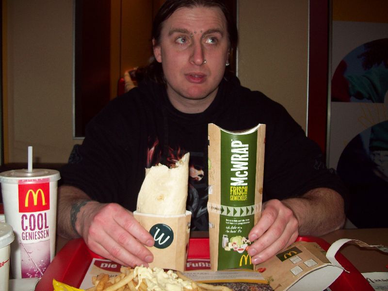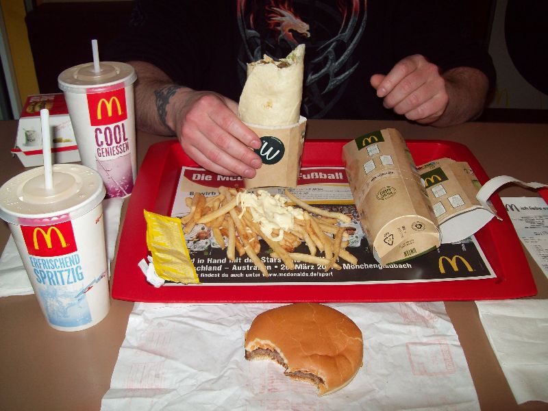 Na dit kleine avontuur van rare buschauffeurs, eenogige hondjes, wat sukkelen in de winkel van 'wat heb ik toch allemaal nog nodig??', en regen op de koop toe, merkten we dat we honger kregen. Ondertussen was het dan ook al bijna half 6 en besloten we om de GPS in te stellen richting MacDonalds! Kwestie van toch nog een beetje ons Belgische traditietje in ere te houden :p Tom en ik hebben namelijk iets met McDo. Da's de schuld van zijn 20% kortingskaartje van zijn werk :p Jammer genoeg moesten we beide toegeven dat de McDo in België toch een pak lekkerder is. Zowel het eten als het drinken dat leek op siroop gemengd met water (yuk ).