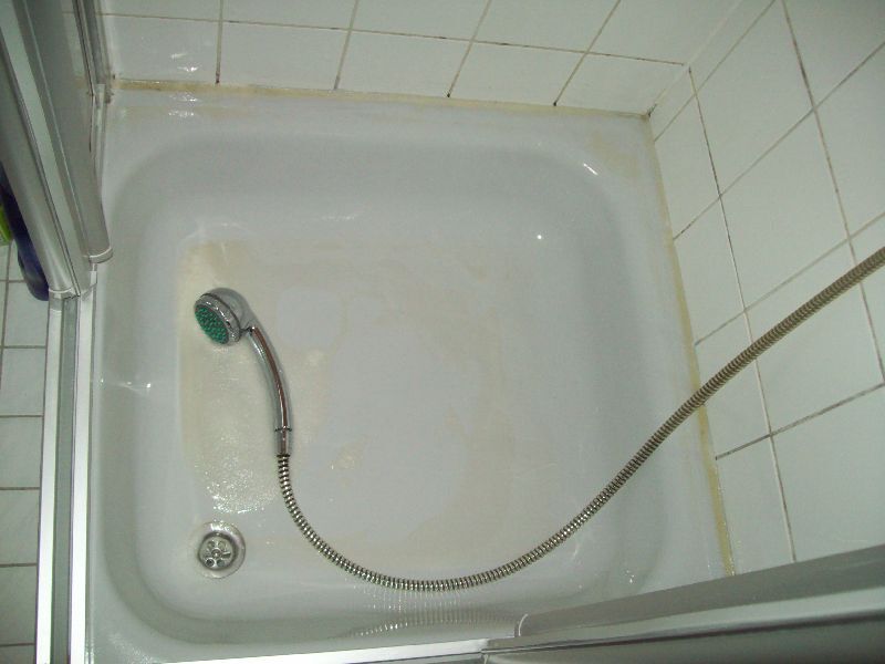 Rond elf uur besloot Tom om te vertrekken richting huis. Ik ging mee om hem uit de afgesloten parking te bevrijden en om hem uit te wuiven. Nadat hij breed glimlachend uit mijn zicht vertrok, en ik heel erg wuifde en 'daaaag' riep, ging ik terug naar binnen. Het voelde raar om ineens helemaal alleen te zijn, en om dat rare gevoel wat weg te werken besloot ik om de badkamer te poetsen. Hoewel hier alles 1x/week gepoetst wordt was dit eigenlijk helemaal niet nodig (dacht ik ), totdat ik zag hoe vuil de douche eigenlijk wel was Ik dacht bij mezelf: "Lang leve mijn Cilit-BANG schuimfles!" en begon ijverig te sprayen. Na het product enkele minuten te laten inwerken zag ik hoe vies de douche eigenlijk was, en hoe gelukkig ik was met mijn Cilit-BANG fles Die reclame klopt dus echt he. BANG en 't vuil was foetsie :p