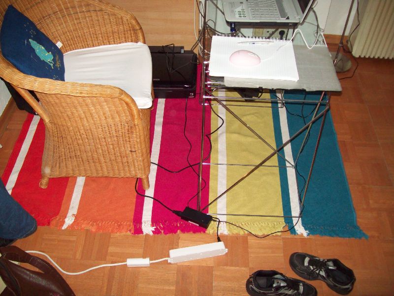 Daarop zijn we direct begonnen met alles te installeren zodat alles een plaatsje kreeg. Tom hield zich bezig met het uitzoeken van de werking van de TV, de internetverbinding en de printer (lang leve mannen en technologie ), en ik pakte alles uit wat ik bij had.
