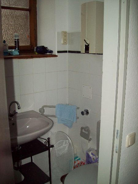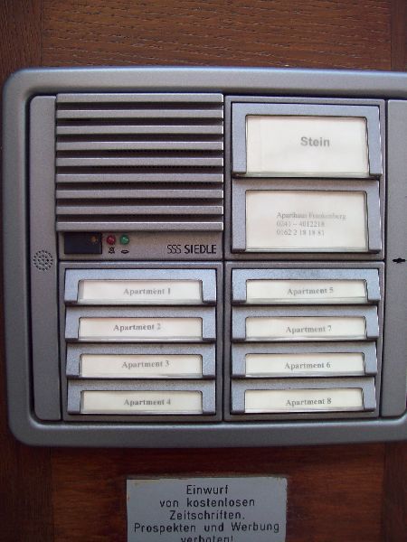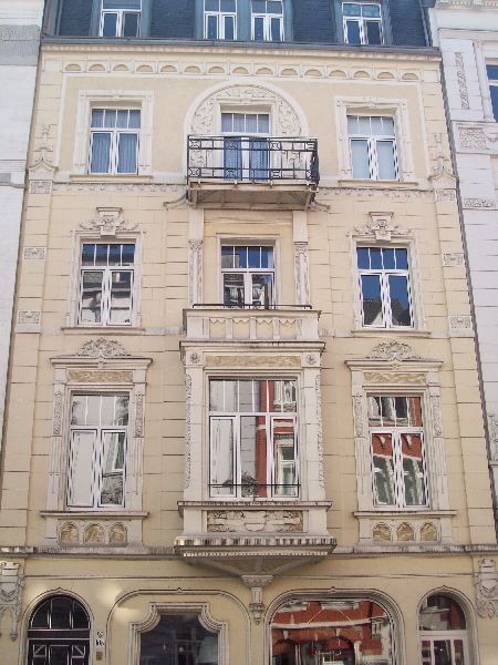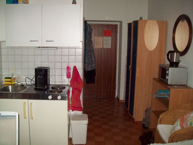 Mevrouw Ursula Kroll, de vrouw die mijn huisbazin is, vroeg of ik haar kon bellen als ik in Aken toekwam. Ze zou me dan verwelkomen en de sleutel overhandigen van het appartementje en die van de afgesloten parkeerplaats. We reden de Bismarckstraße in, en vonden al snel nummer 47, waar ik moest zijn. We stapten uit en gingen ernaartoe. Een lieve vrouw met een leuke zwarte bril wachtte ons op en begroette ons vriendelijk met een grote lach om haar mond en een stevige handdruk. Ze vertelde ons waar Tom zijn auto'tje mocht zetten, en zei me hoe de poort werkte. Nadat Tom z'n auto veilig had geparkeerd in de afgesloten parking, gingen we naar het appartementje. Nadat mevrouw Kroll ons dit getoond had en enkele formaliteiten meedeelde, gaf ze ons nogmaals een handdruk, wenste me veel succes en vertrok ze.