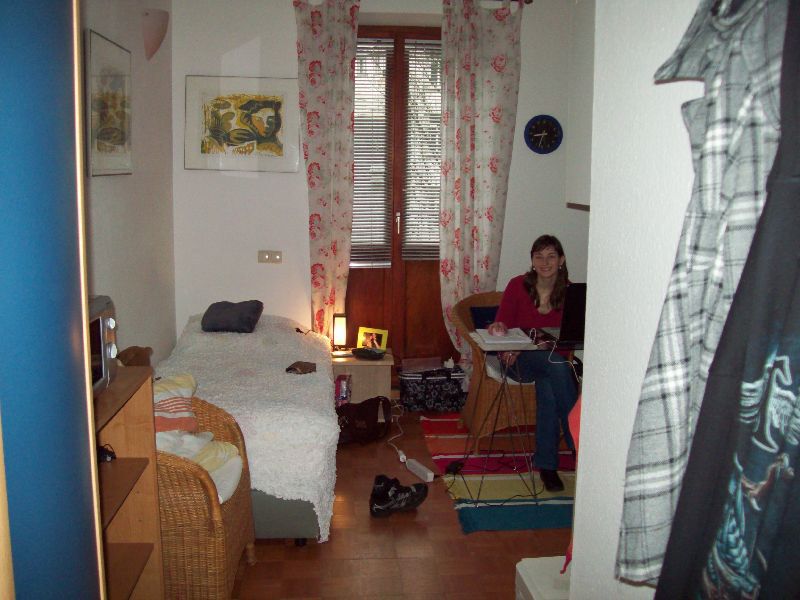 De volgende morgen schoot ik ineens wakker door een irritant geluid dat ik nog niet eerder gehoord had. Op m'n nachtkastje stond een superklein klokradio'tje dat me wakker blies met een irritante "ieee ieeee ieee" toon.. Wat schrok ik me rot! Het duurde eventjes vooraleer ik de knop vond om dat vervelende ding af te zetten, en uiteindelijk besloot ik dan maar om zijn leven te beëindigen door zijn batterijen af te nemen (haha, wie lacht er hier het langste? ) Geërgerd ging ik een nieuwe poging ondernemen om nog wat uurtjes slaap in te halen. Rond 9.10u lag ik uiteindelijk klaarwakker in m'n bed. M'n ogen gingen open, ik zag het licht door de blinden kruipen, en sprong vol energie op.