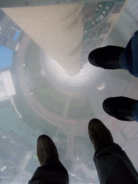 Met een goed gevuld maagje dalen we enkele meters af naar een platform met glazen vloer. Best wel eng om zo de begane grond een 250 meter onder je voeten te zien.