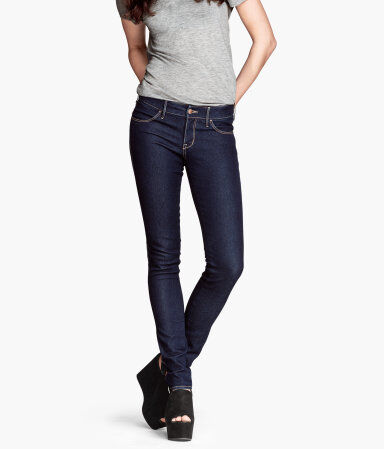 donkerblauwe low-hanging jeans: H&M 9,95 euro