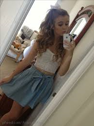 Ariana Grande is een beroemde actrice / zangeres en speelde in Victorious het personage Cat en later in de spin-off serie Sam&Cat ook nog eens hetzelfde personage! ze staat bekend om haar felrode haren, bruine grote puppyogen en hoge onschuldige stem. Zelf heeft ze een geweldig gevoel voor stijl en gaat altijd voor girly kleren met kant, strikjes, krullende haren en natural makeup. steal her style!