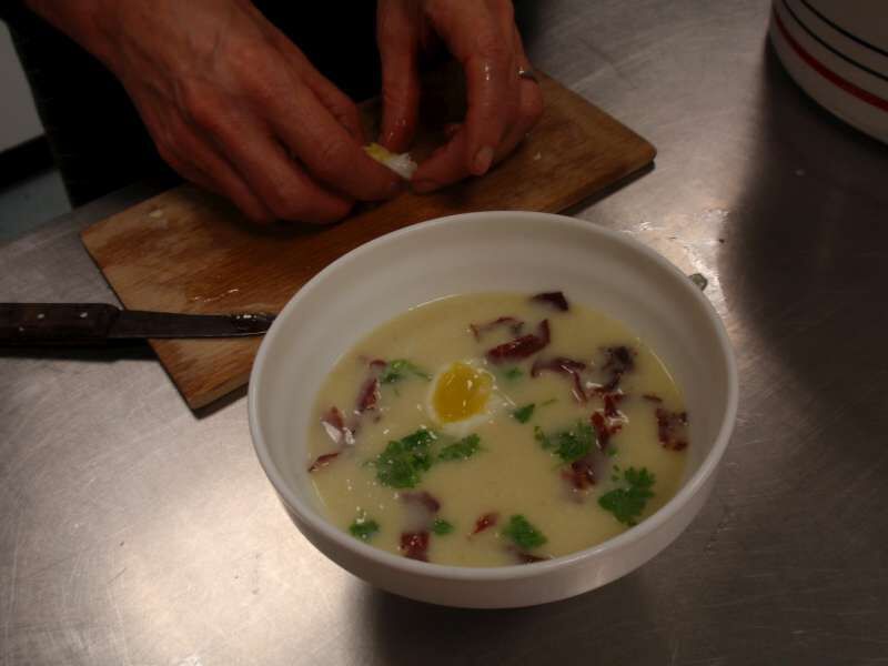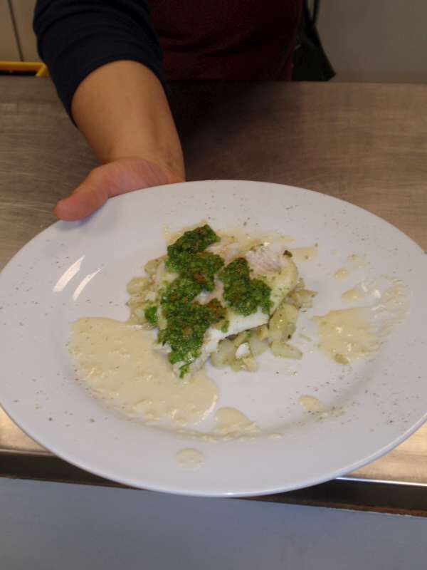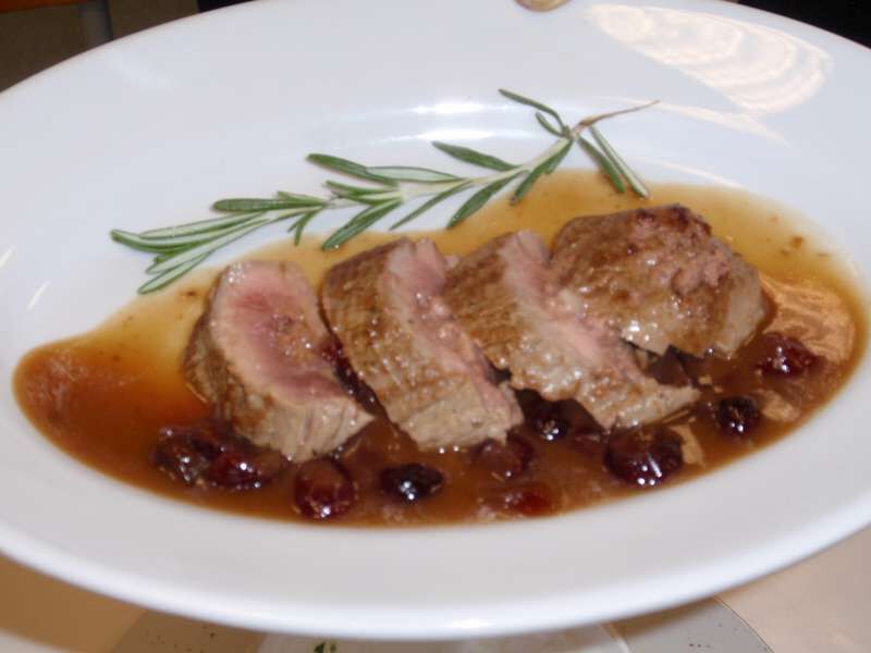Slaatje van gerookte eendeborstfilet op een coulis van gorgonzola Kabeljauw met venkel en een persillade van Blue Stilton Preisoep met filet d'Anvers en kwartelei Feestelijk gevulde lamsfilet met veenbesjessaus Mokkabavarois met Irish coffee-saus