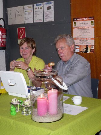 Tijdens het ontbijt van Fietsen voor OIGO werden ook de winnende nummers getrokken van de tombola voor koelkast en kruimeldief/steelstofzuiger geschonken door