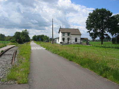 Oude Spoorlijnweg Het asfalt pad is aangelegd op een voormalige spoorbedding, 14 Km kaarsrecht door de Antwerpse Kempen. Het hele traject is mooi groen afgeboord met bomen en struiken. We fietsen afgewisseld langs boerderijen, weiden en velden. Af en toe kruisen we een landweg of een verkeersweg en deze overwegen zijn voor fietsers zeer veilig uitgerust, telkens met 2 houten hekjes waar men gemakkelijk kan tussen fietsen en voorzichtig oversteken.