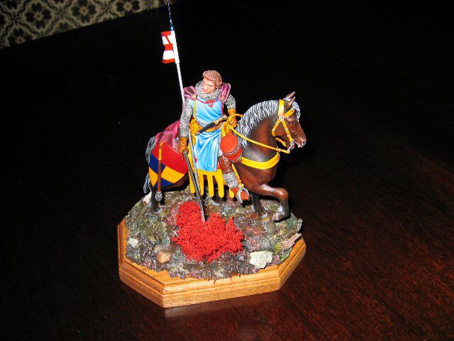 Jai réalisé un diorama, nommé "Les chevaliers de la table ronde, selon la légende du Roi Arthur. La table est faite en calcaire, magnifiquement sculptée. Le socle de la table porte des plaques indiquant les noms des chevaliers. Toutes les pièces font 90 mm en sont en plomb. Jai travaillé un an sur cette pièce. Celui qui veut en savoir plus sur cette pièce, peut m'envoyer un mail.