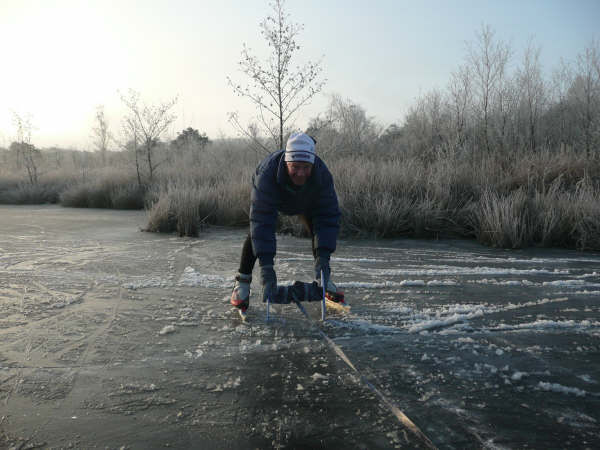 Gisteren 4 januari 2010 zijn 2 bestuursleden tijdens het meten van het ijs door het ijs gezakt!! Ben dus gewaarschuwd, het is heel slecht ijs met 2cm echt ijs en daaronder drab.