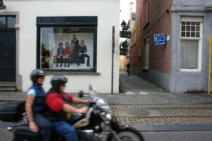 En geloof het of niet, plots zie ik door de venster aan de overkant van de straat een schone blonde juffrouw in witte badjas lopen. Gevolgd door een cameraploeg. Iedereen aan de vensters natuurlijk. Ik heb vlug mijn fototoestel gepakt en een fotootje getrokken want ge ziet niet alle dagen een blonde deerne in witte badjas over de straat paraderen, zeker niet in een kleine gemeente. De foto is een beetje flou maar dat zal door mijn haast zijn of is het van t verschieten van de schoonheid van dat jong dingske. Maar of dat nu miss België was, ik geloof het niet al beweert de Mark dat hij absoluut zeker is.t Was Virginie zegt hij ! Hij bewijst het met direct naar het internet te surfen om me een foto te laten zien van Virginie. Maar hoe meer ik er naar kijk hoe minder ik hem geloof.