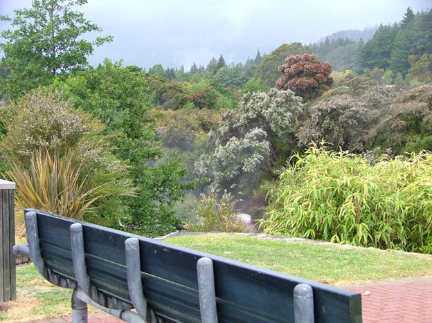 Even later begint onze tocht door het Northland. Het landschap ziet er herkenbaar uit, lijkt wat op Engeland en Schotland, heel heuvelachtig dus. Alleen komt alles wat er groeit ons vreemd voor. Ons reisdoel wordt het Waipoua Forest Park, een verzameling van schitterende kauri's. Bomen waarvan er een aantal al aan hun derde millennium toe zijn. Tussen 1880 en 1890 werd uit de stam gom gewonnen, maar ze werden ook massaal gerooid voor het hout. Men probeert wat overblijft te beschermen. De oudste kauri van het land bevindt zich in dit park samen met zo'n 300 soorten bomen, palmen en varens. Hij wordt op 1500 jaar geschat en vier andere giganten tellen minstens 1000 lentes. Alhoewel ze vanwege alle andere bomen moeilijk in een foto te vatten zijn, deden we toch een poging.