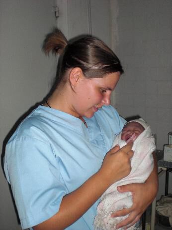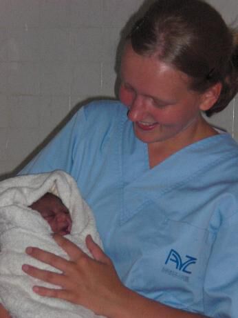 Om 23u45 was de patiente van Cat bevallen na een kleine schouderdystocie. Cassy is snel komen helpen om de benen van de vrouw in hyperflexie te brengen en wat suprapubische druk te geven. De flinke meid van 4,05 kg kwam er goed door! Een beetje blauw maar voor de rest alles in orde. De moeder had wel een kleine scheur dus waren wat hechtingen nodig. De placenta was ook niet volledig dus is een manuele baarmoederrevisie nodig geweest (Awa heeft dat gedaan, we zijn er precies niet echt scheutig op!). Daarna kreeg ze nog een kleine postpartumbloeding en viel ze flauw... we hebben een infuus geprikt en aan vaatvulling gedaan. Gelukkig kwam deze keer weer alles goed!!!!