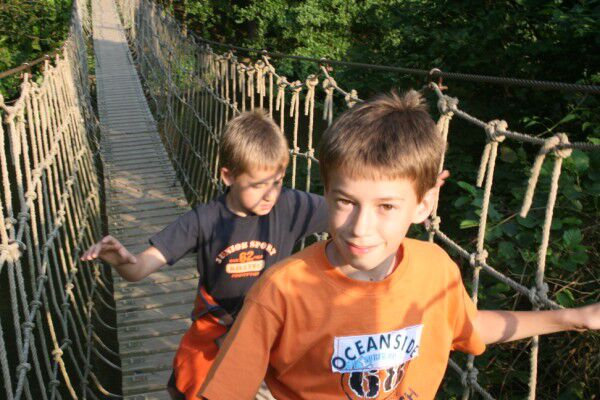 Na een heerlijke spaghetti (jawel, meester Stijn, we aten ons bordje flink leeg) vertrokken we over de Indianajones brug voor een spannend tochtje onder de grond.