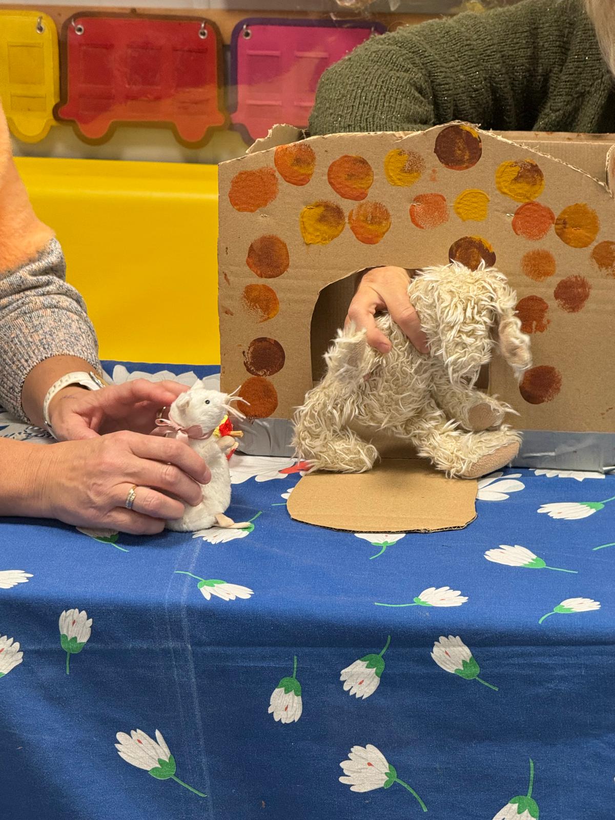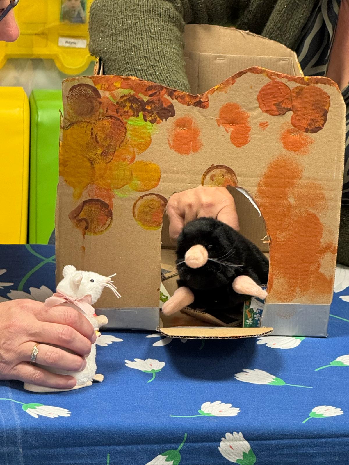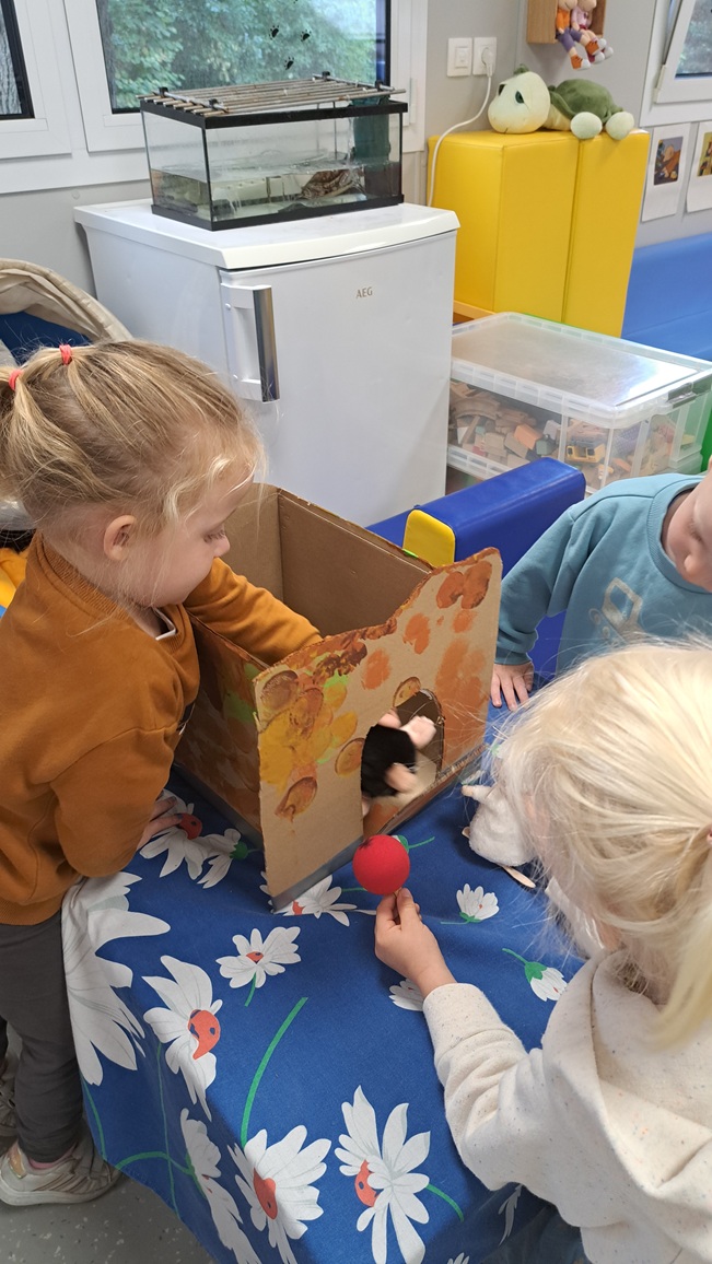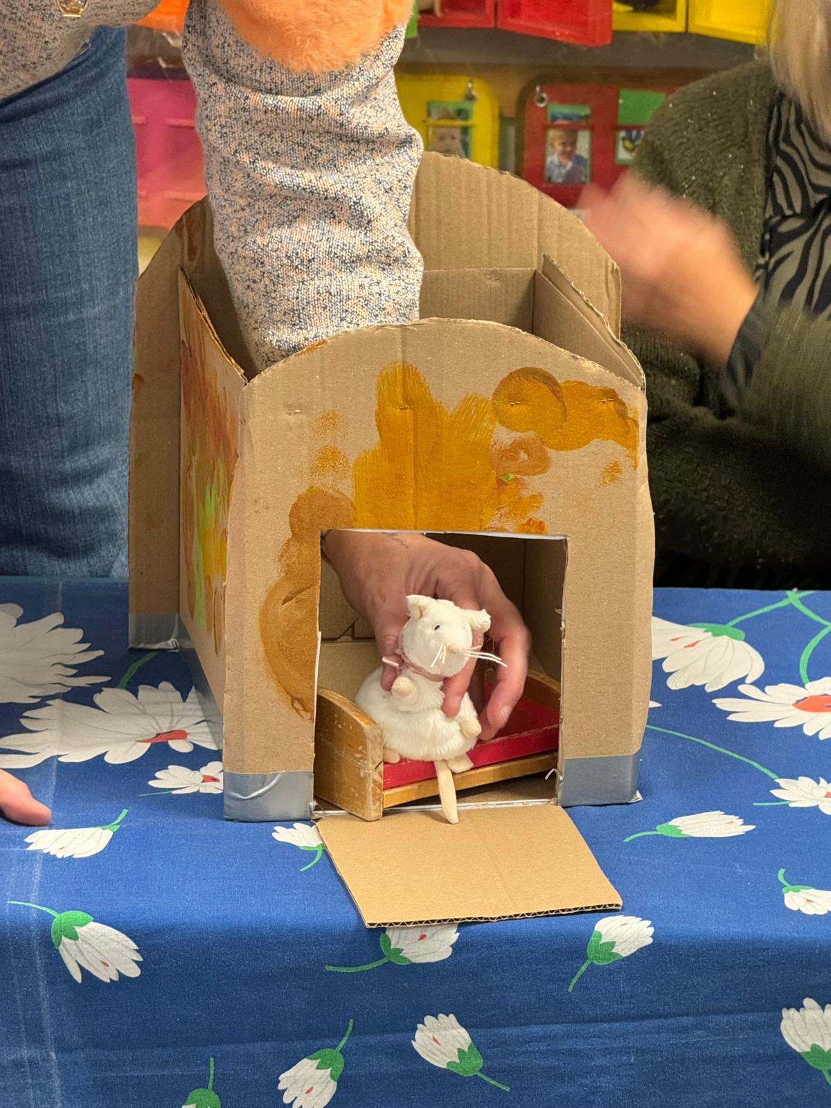 We zingen het lied: "Kleine muis die zoekt een huis".