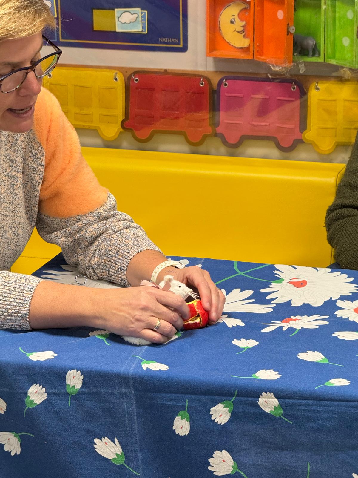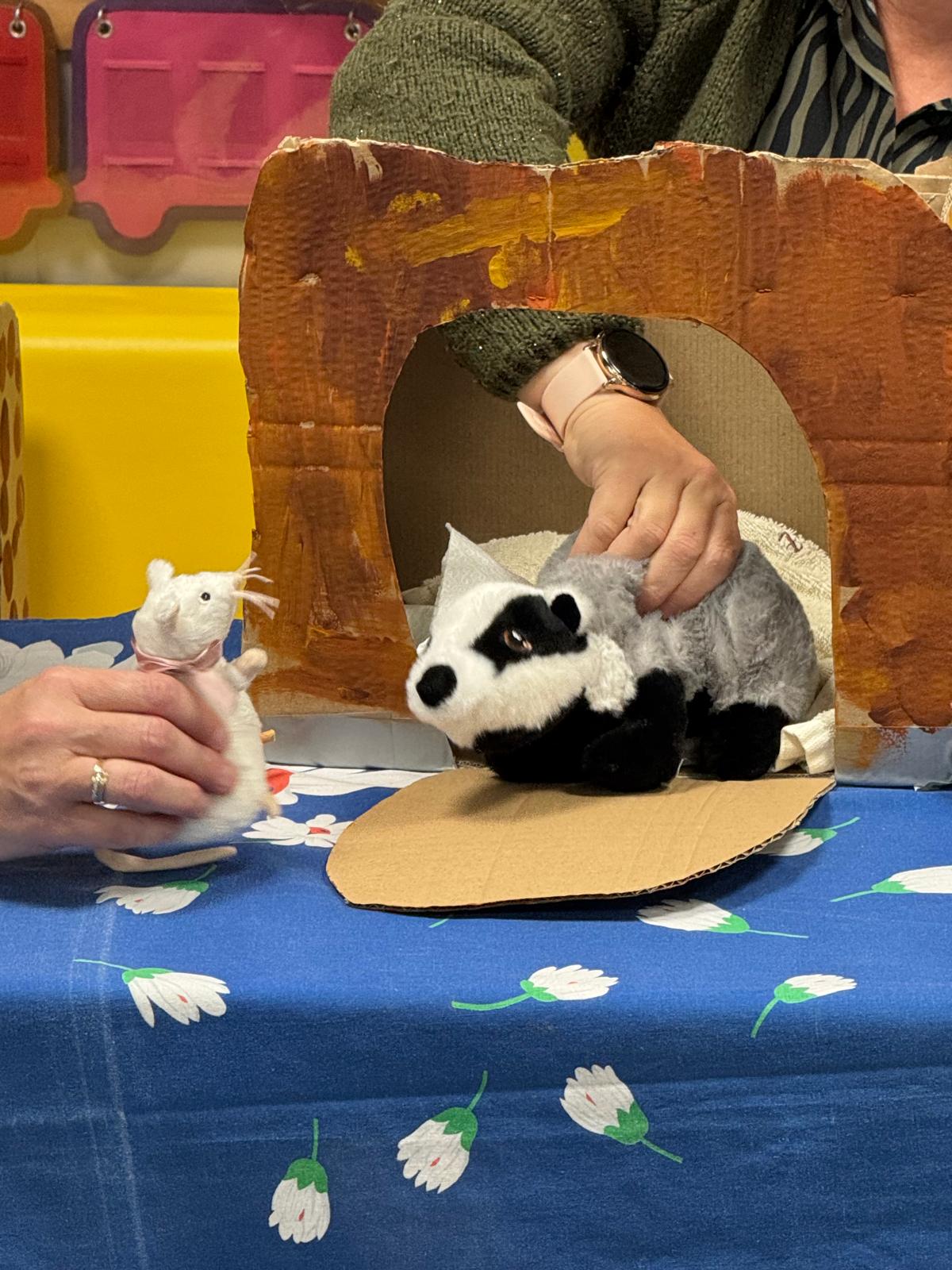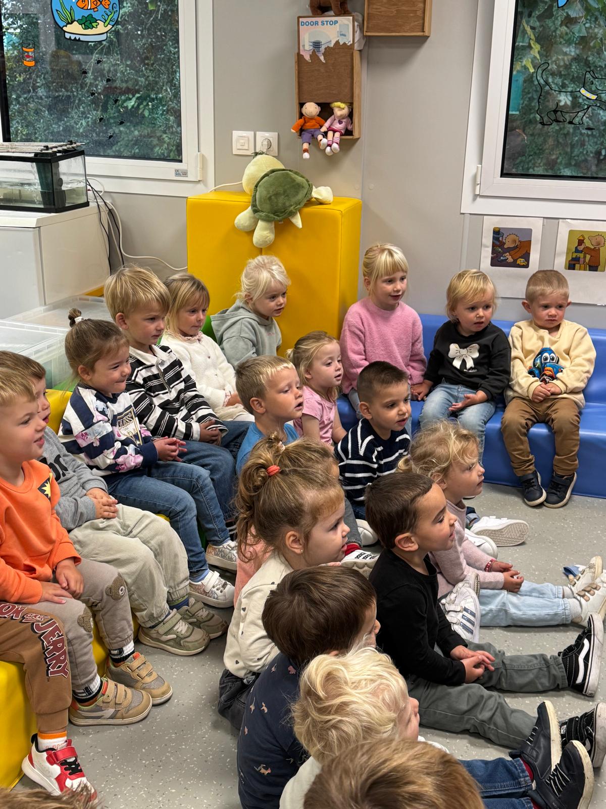 We zingen het lied: "Kleine muis die zoekt een huis".