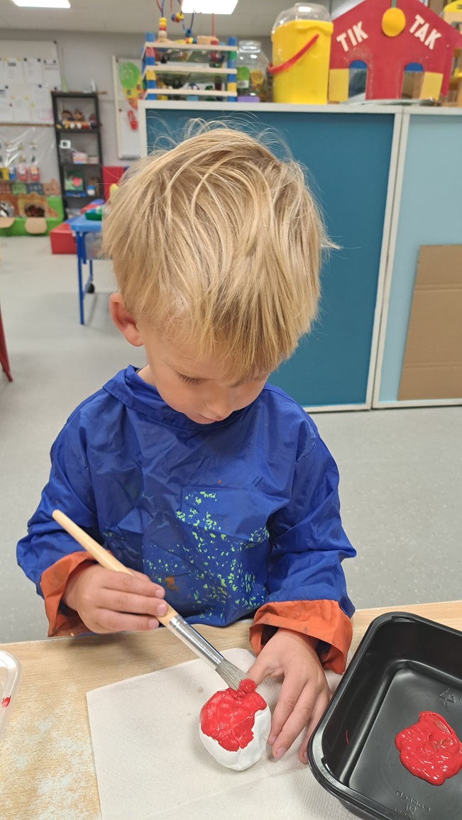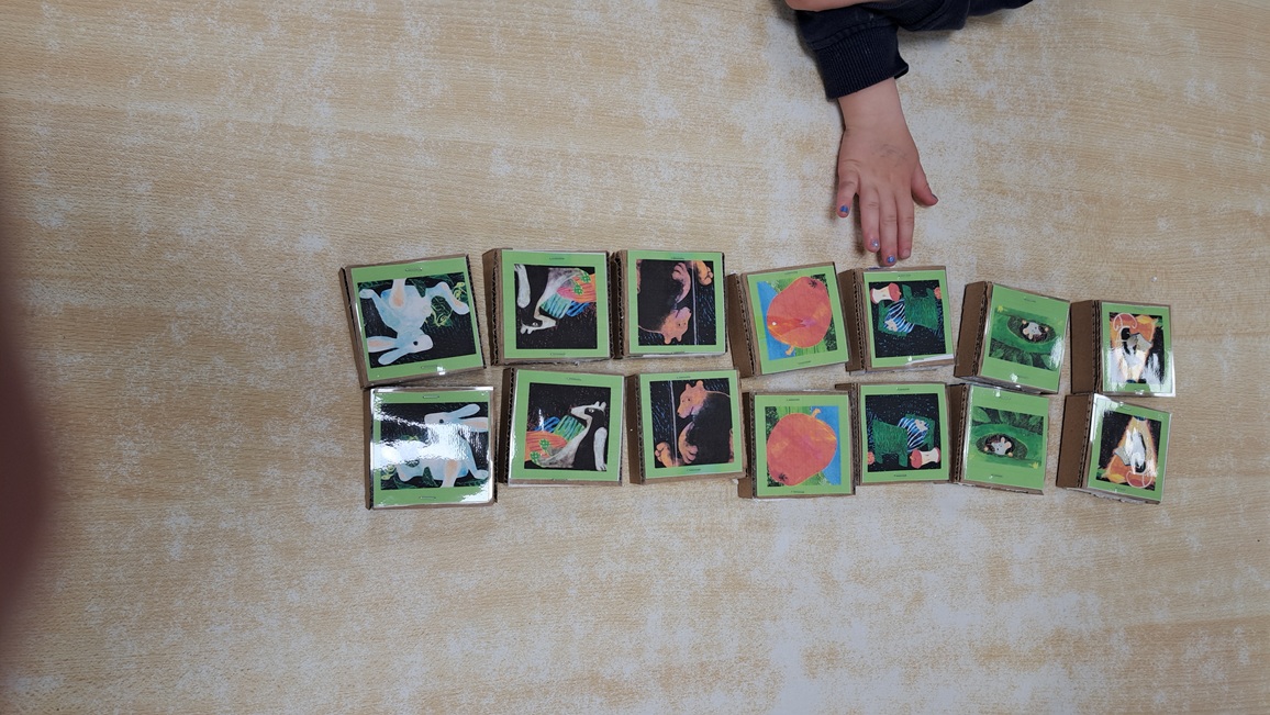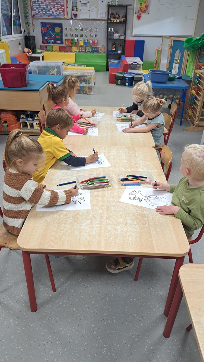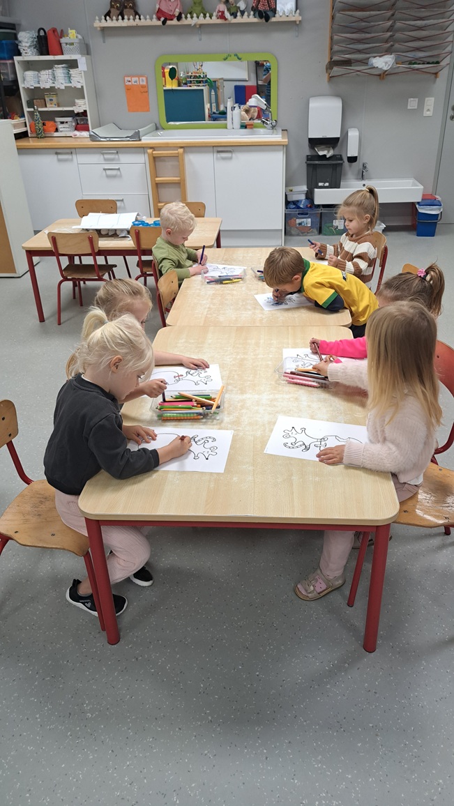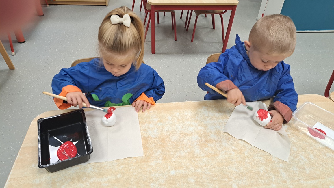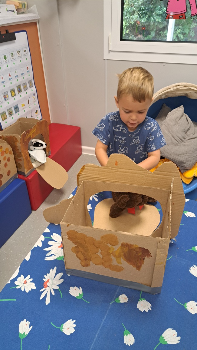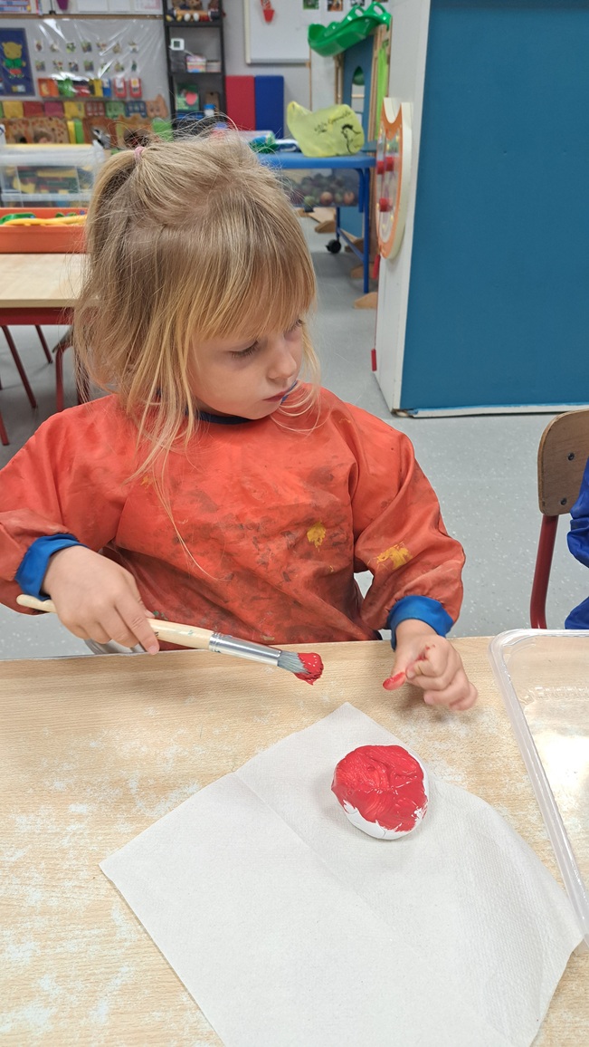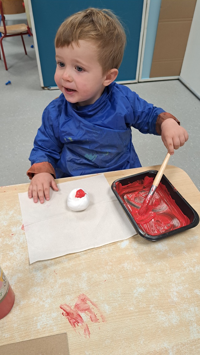 Uit dozen maken we de holletjes van de personages uit het boek na. Met stempels bestempelen we de holletjes.