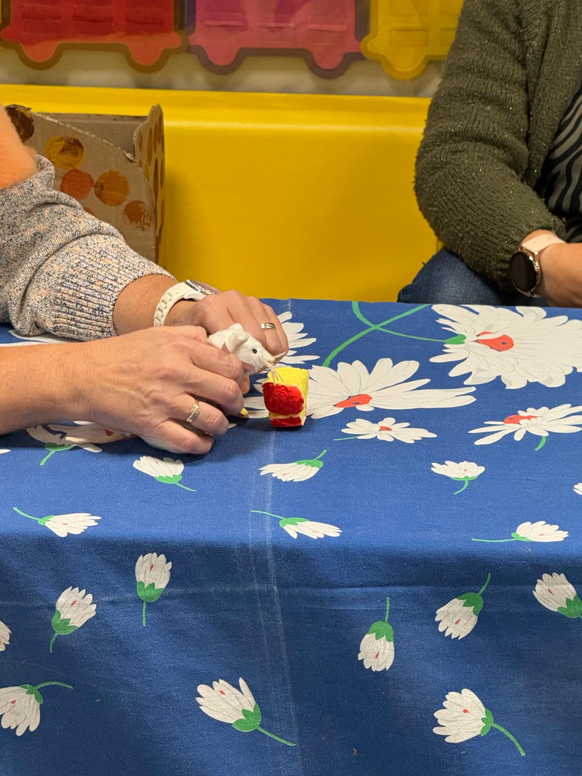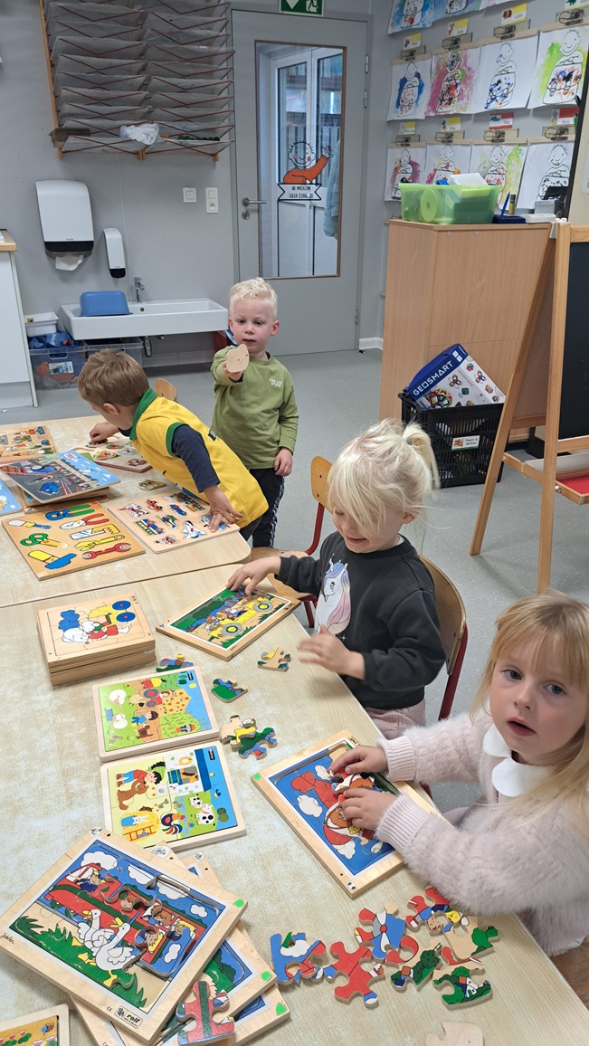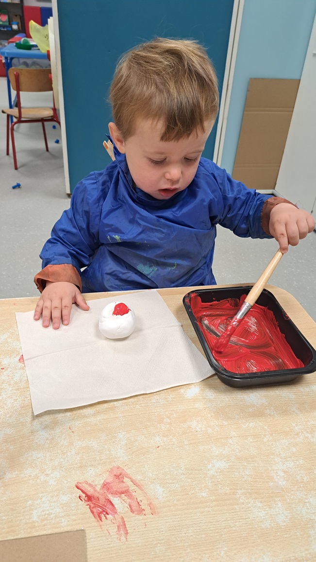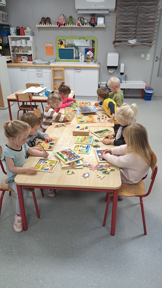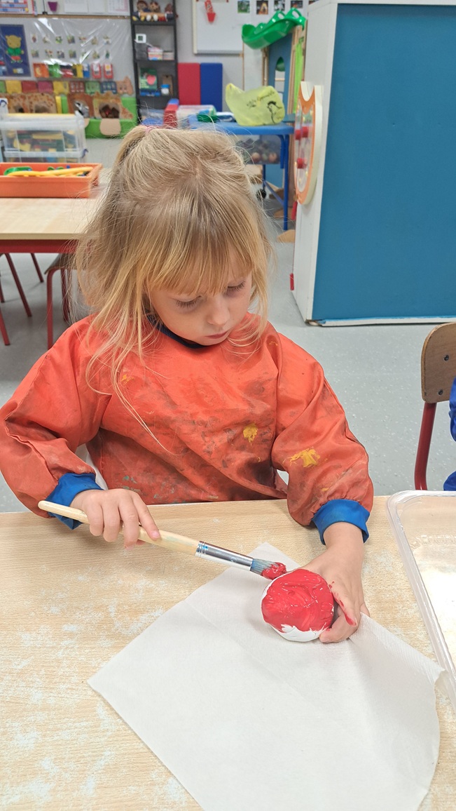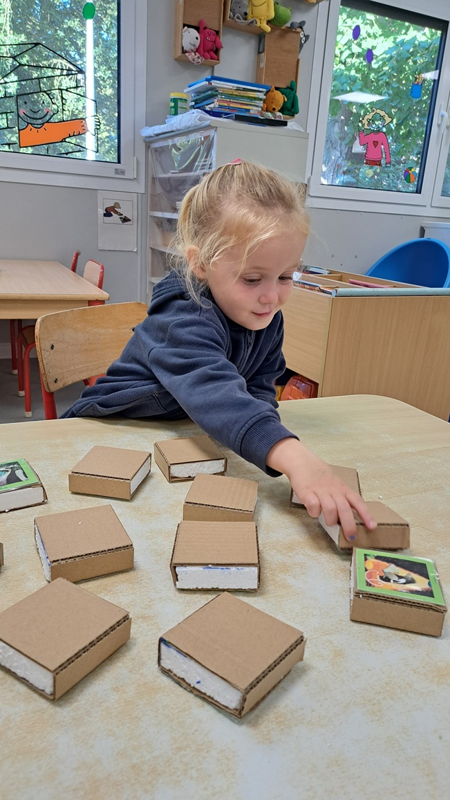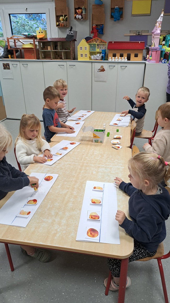 Uit dozen maken we de holletjes van de personages uit het boek na. Met stempels bestempelen we de holletjes.