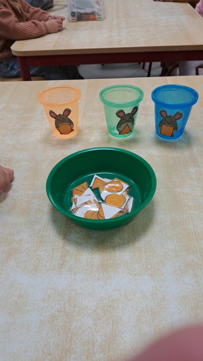 De kaasvormen (rechthoek, driehoek, vierkant) plaatsen we bij de juiste muis.