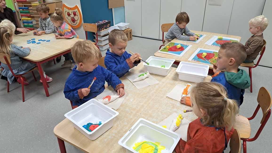 Samen zingen we het lied:  "Alle eendjes zwemmen in het water".