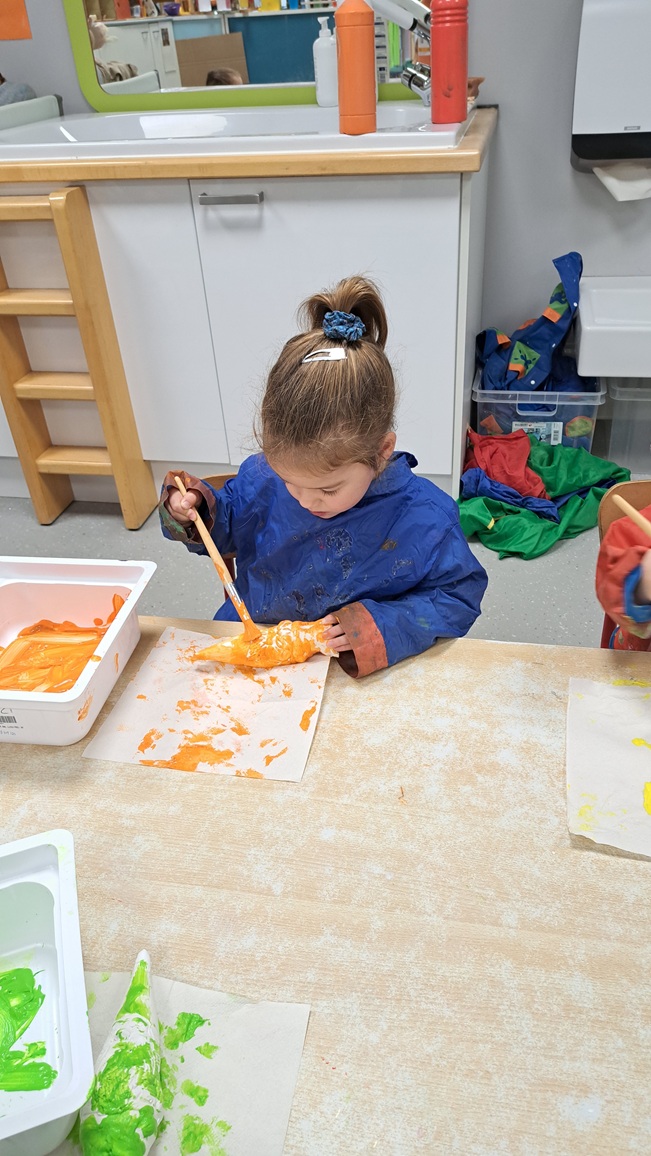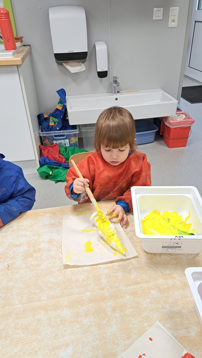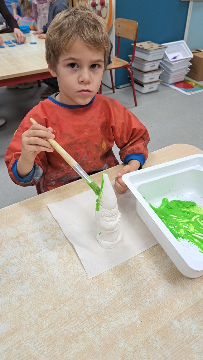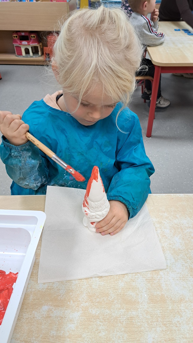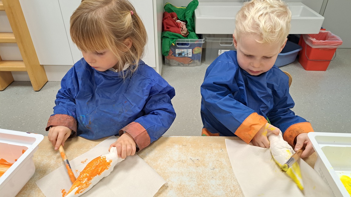 We beschilderen onze zelf gekleide appel met rode verf.