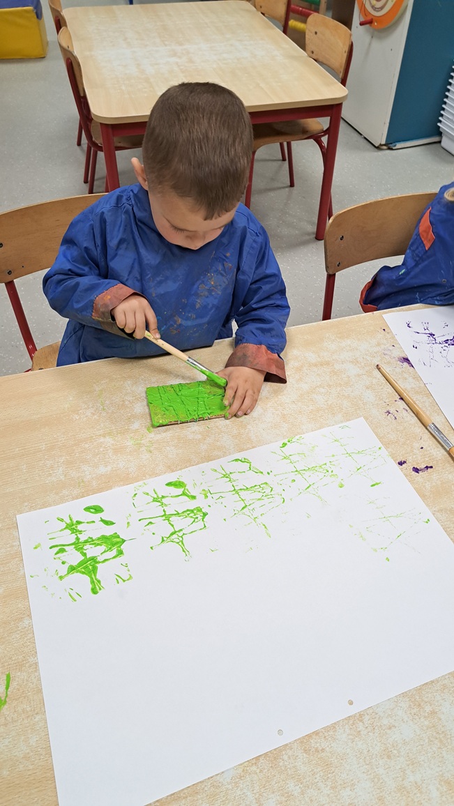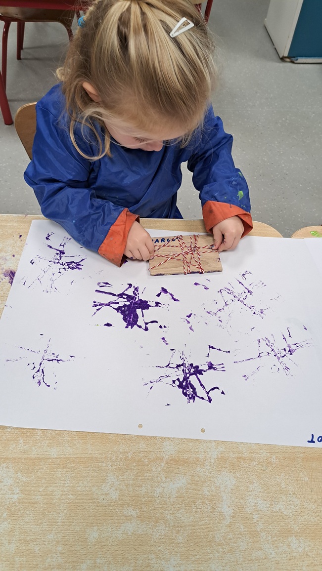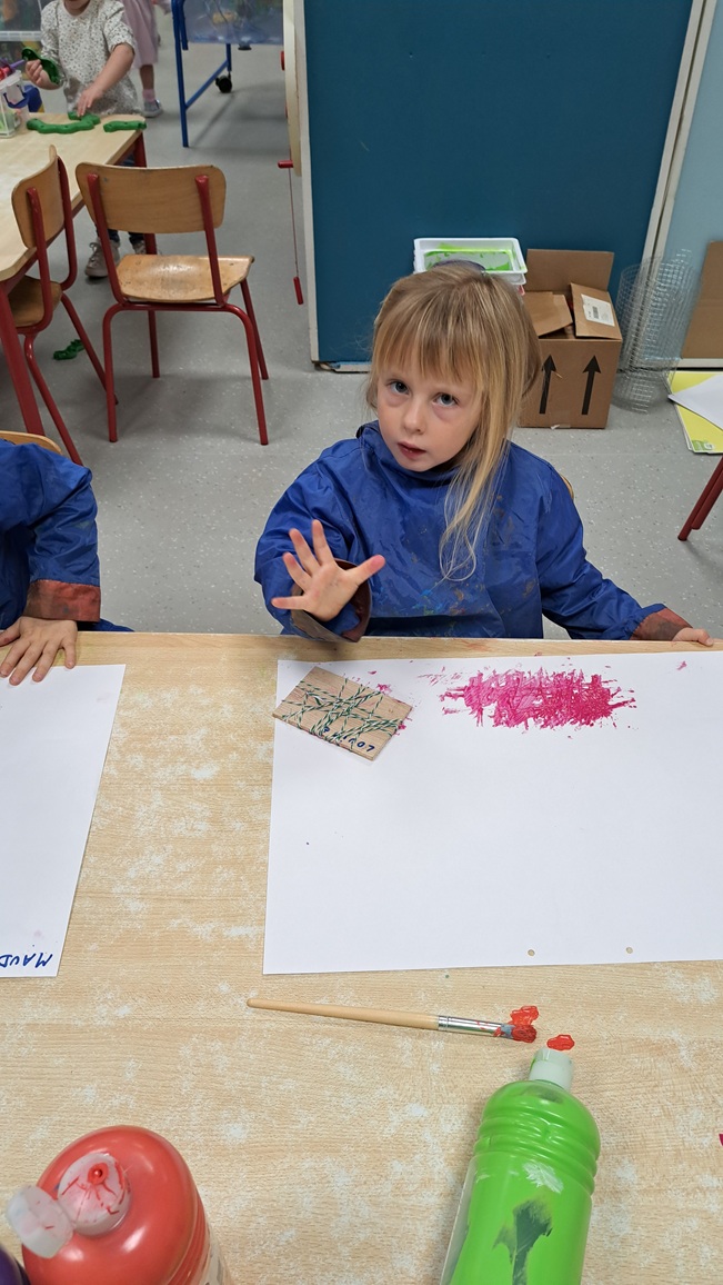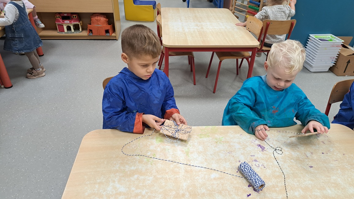Uit dozen maken we de holletjes van de personages uit het boek na.  Met stempels bestempelen we de holletjes.