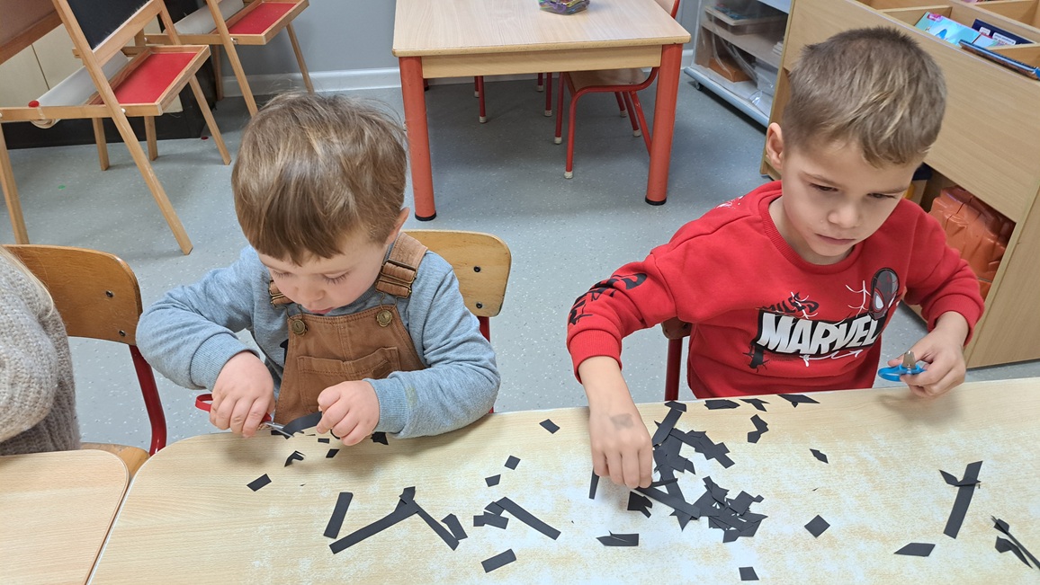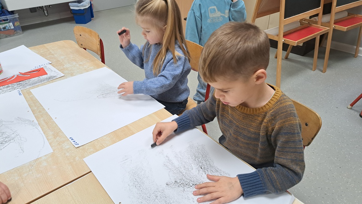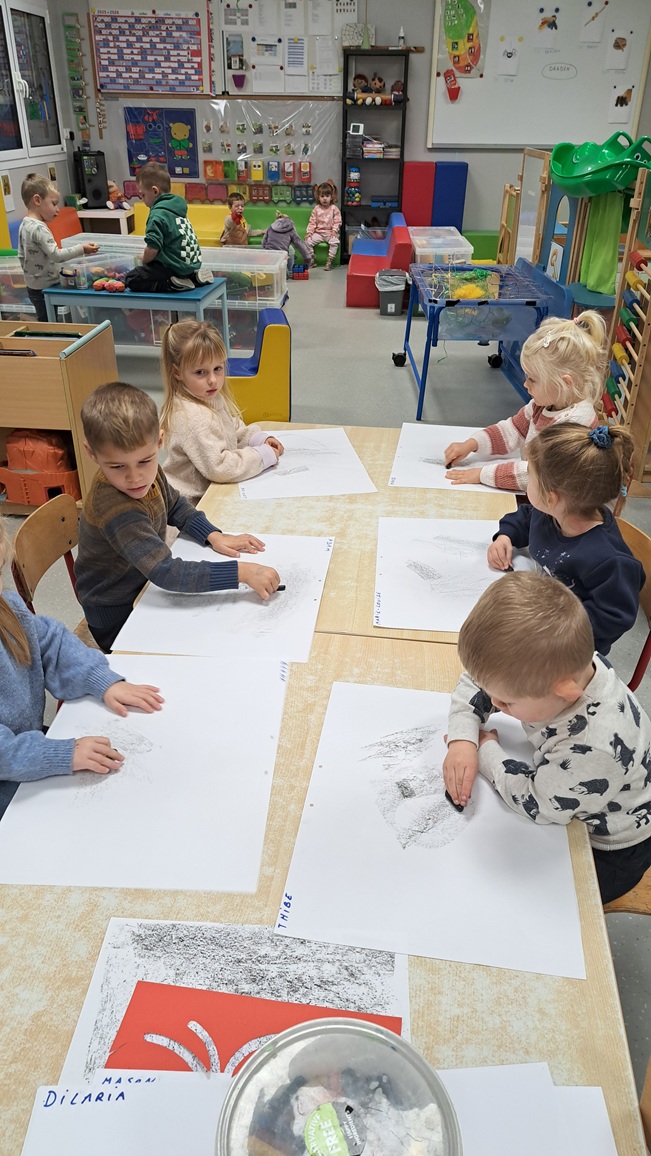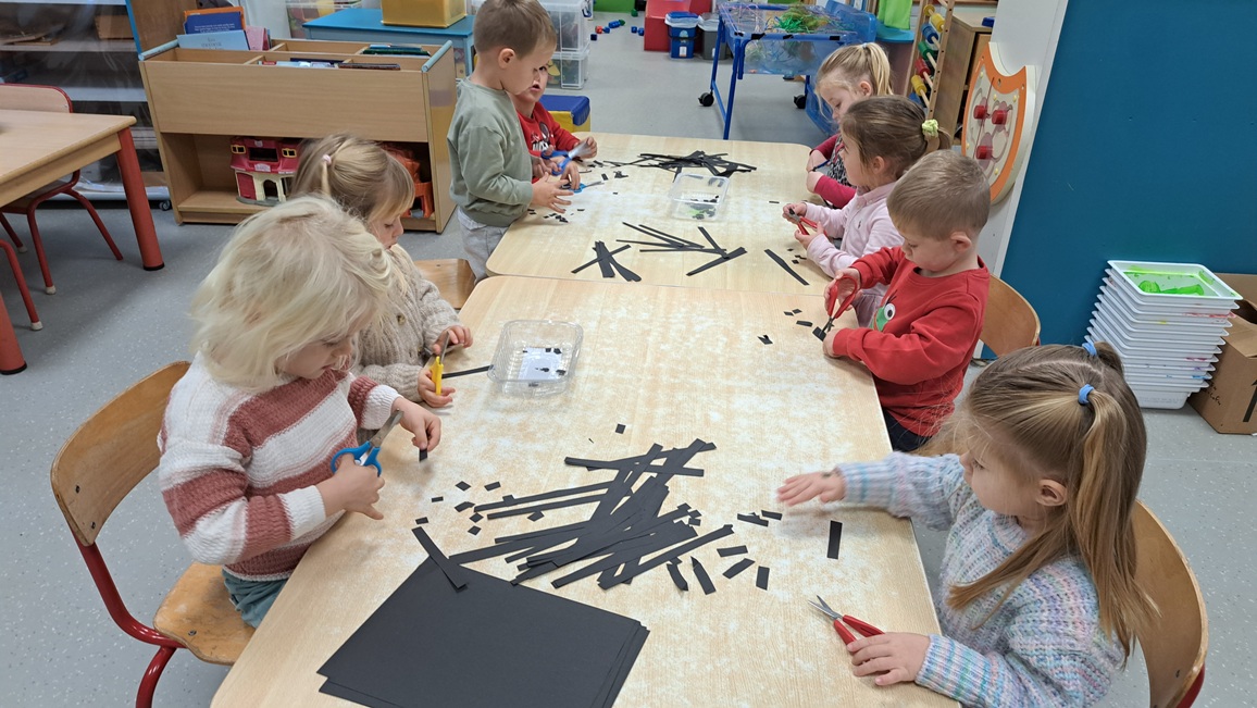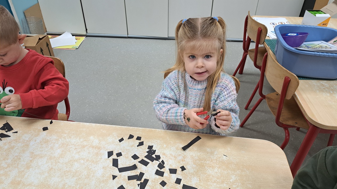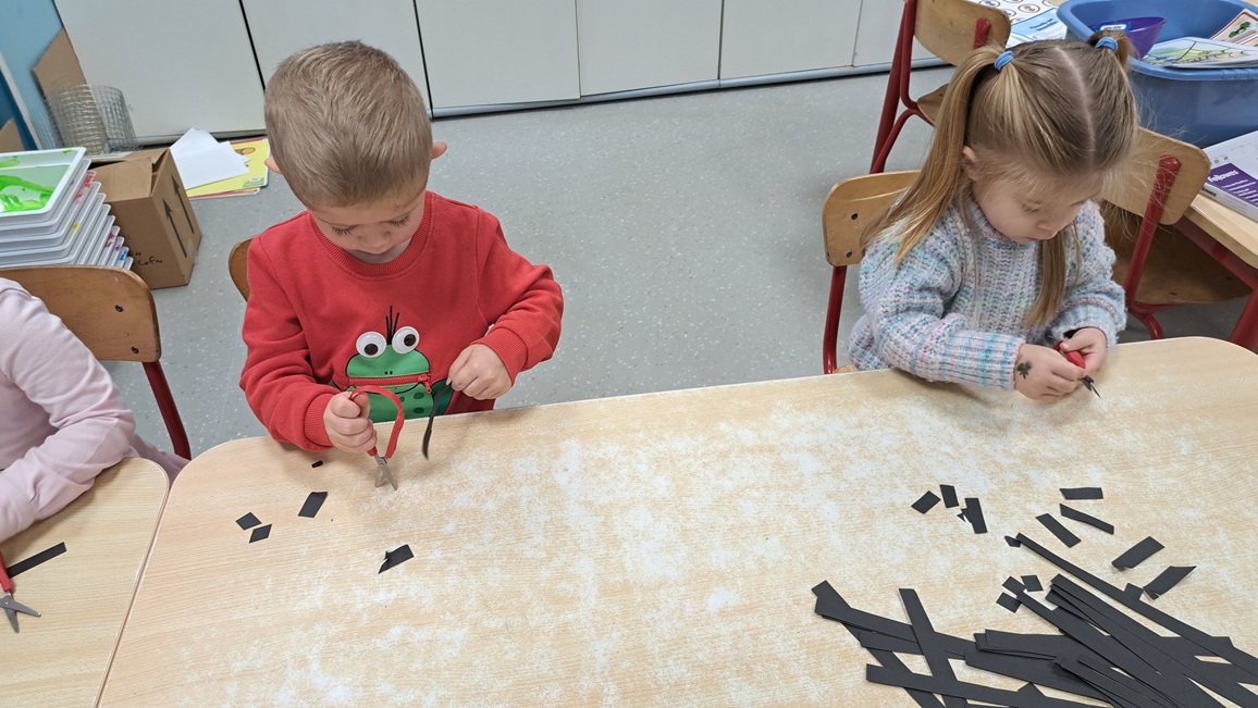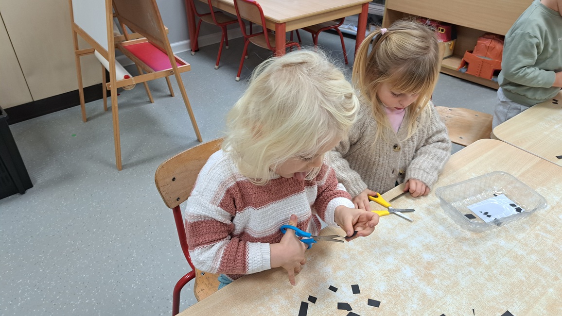 Uit dozen maken we de holletjes van de personages uit het boek na.  Met stempels bestempelen we de holletjes.