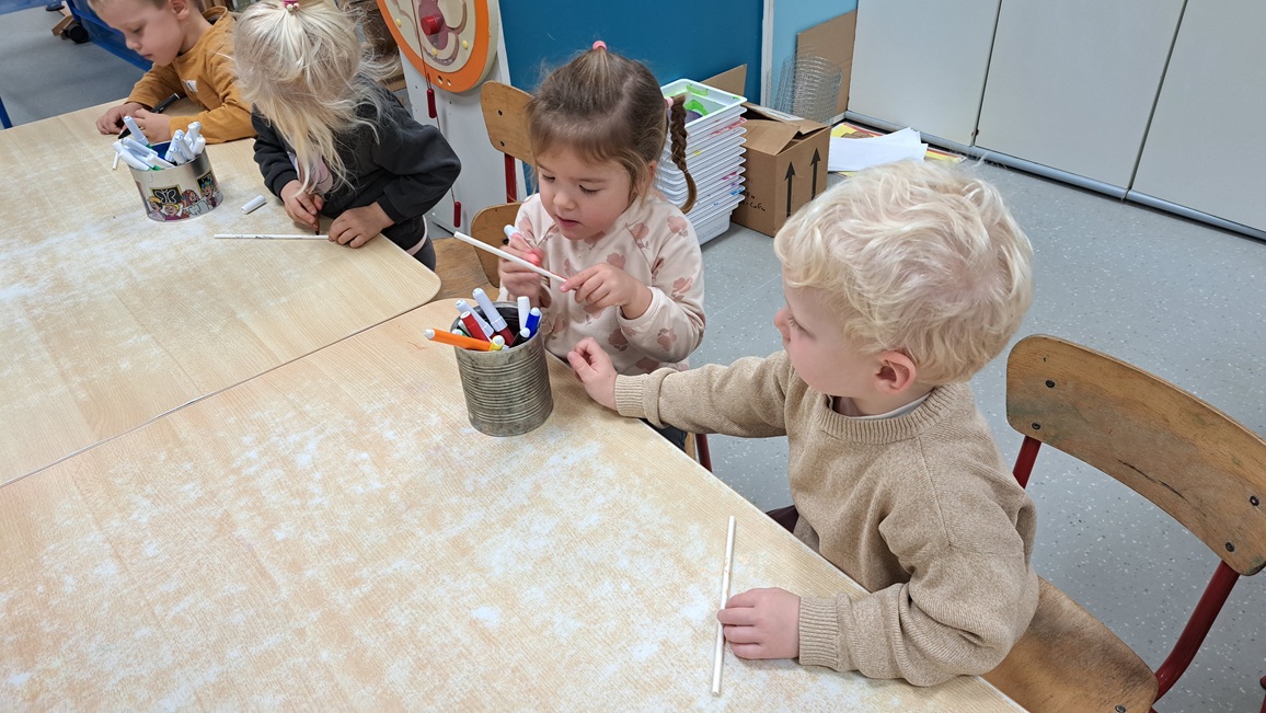 Samen zingen we het lied:  "Alle eendjes zwemmen in het water".