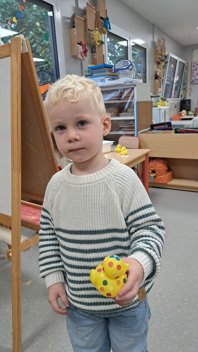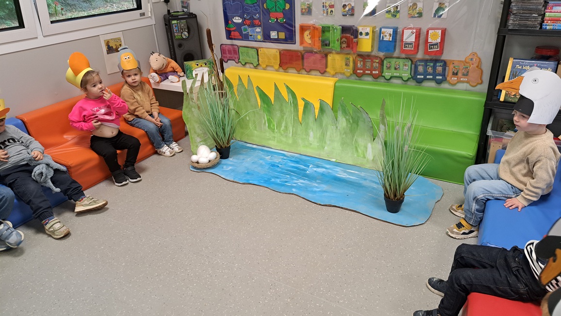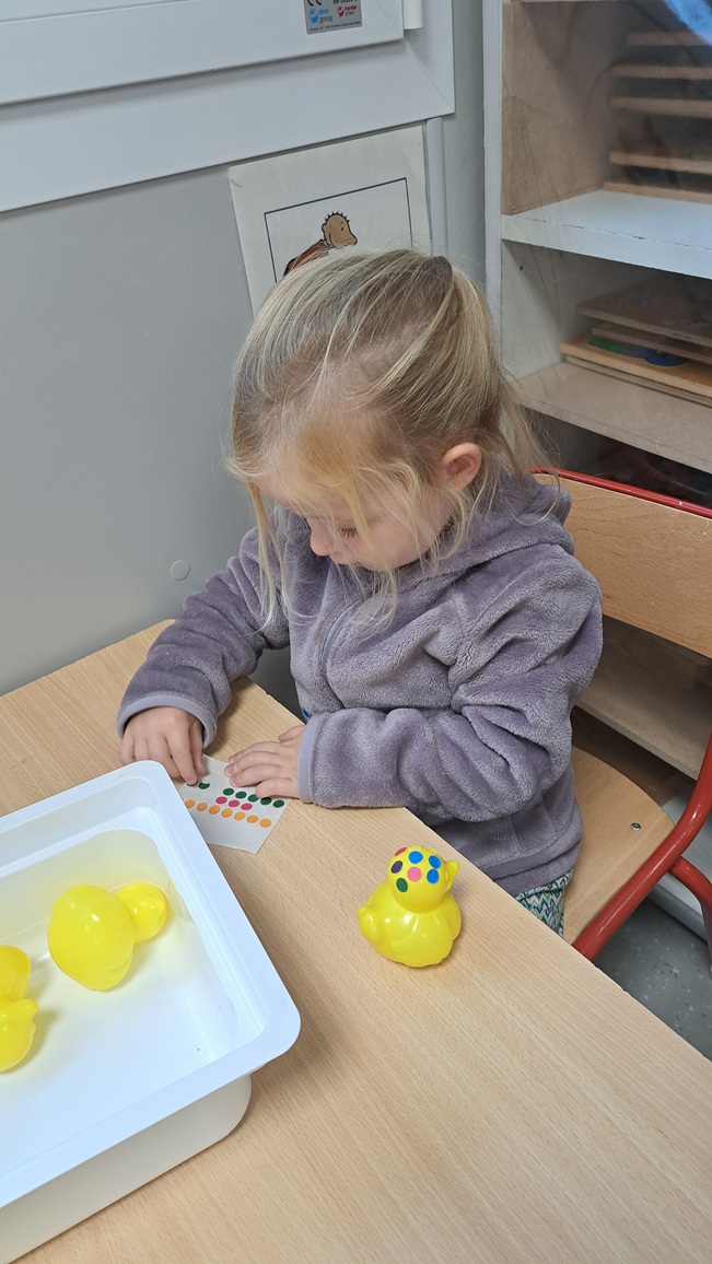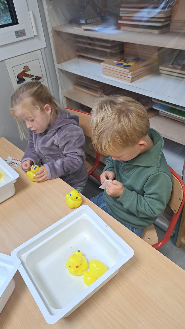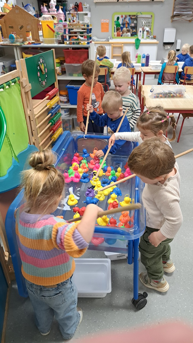 Samen zingen we het lied: "Alle eendjes zwemmen in het water".