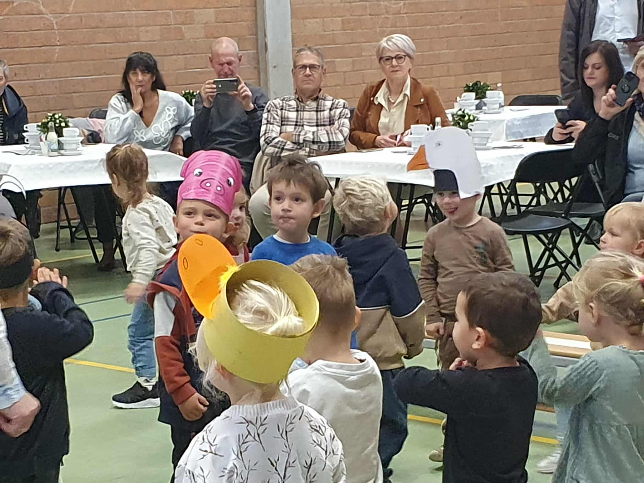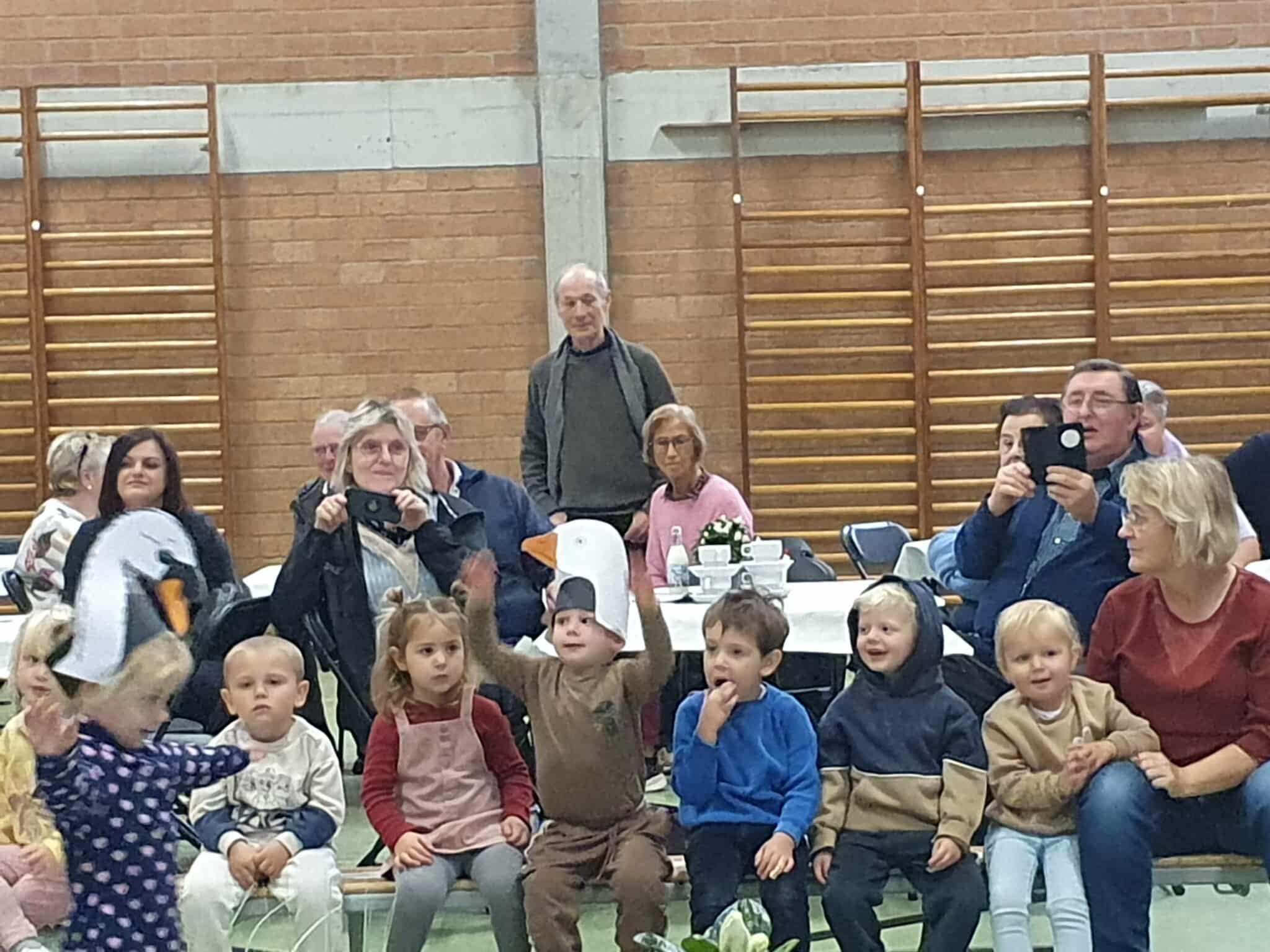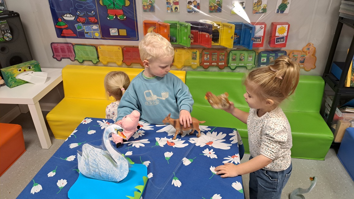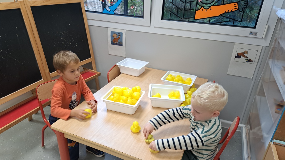 Samen zingen we het lied: "Alle eendjes zwemmen in het water".