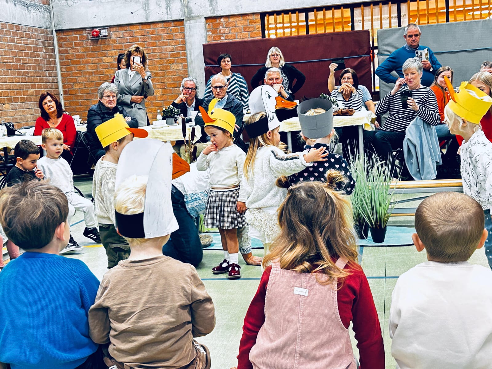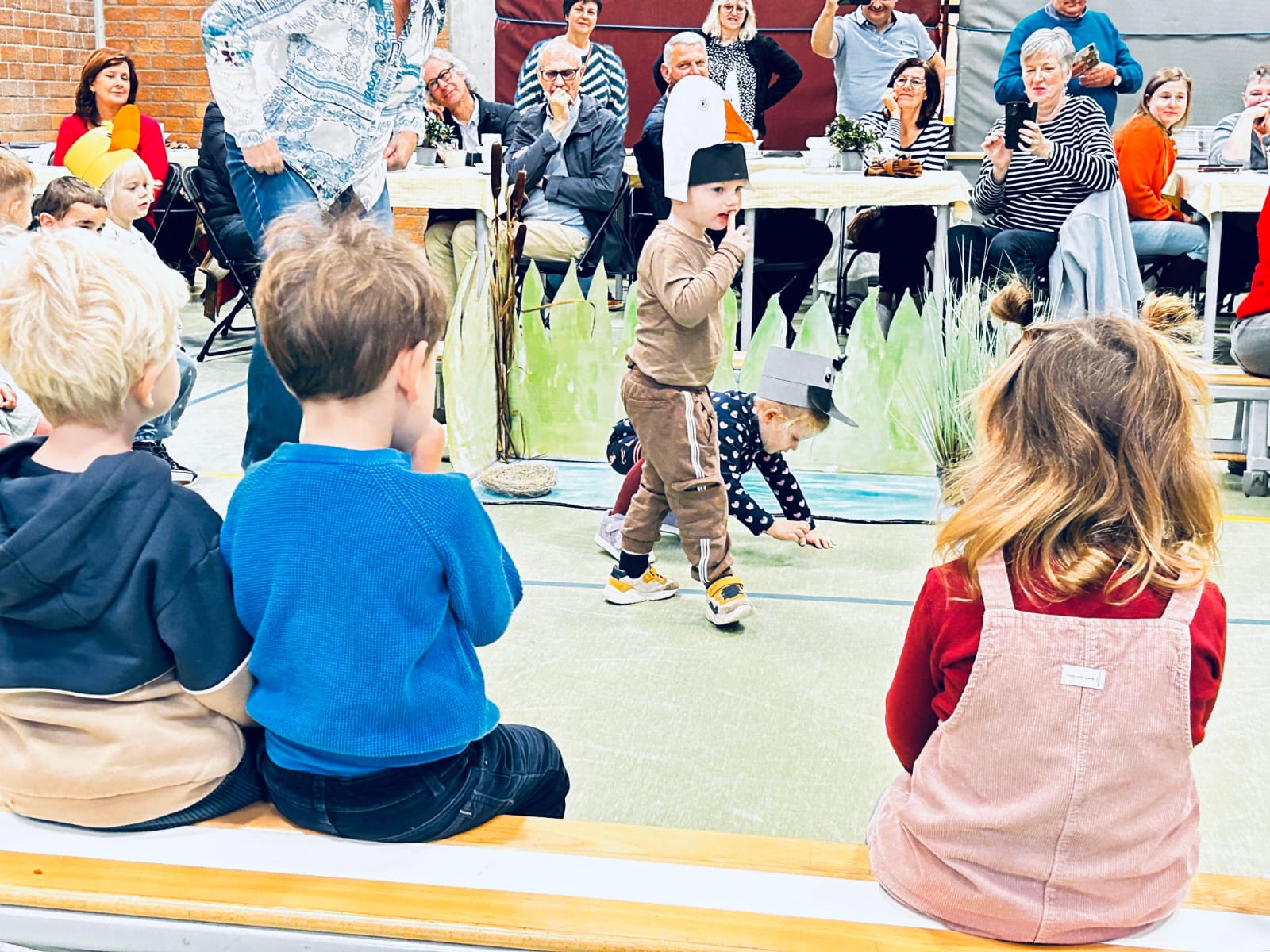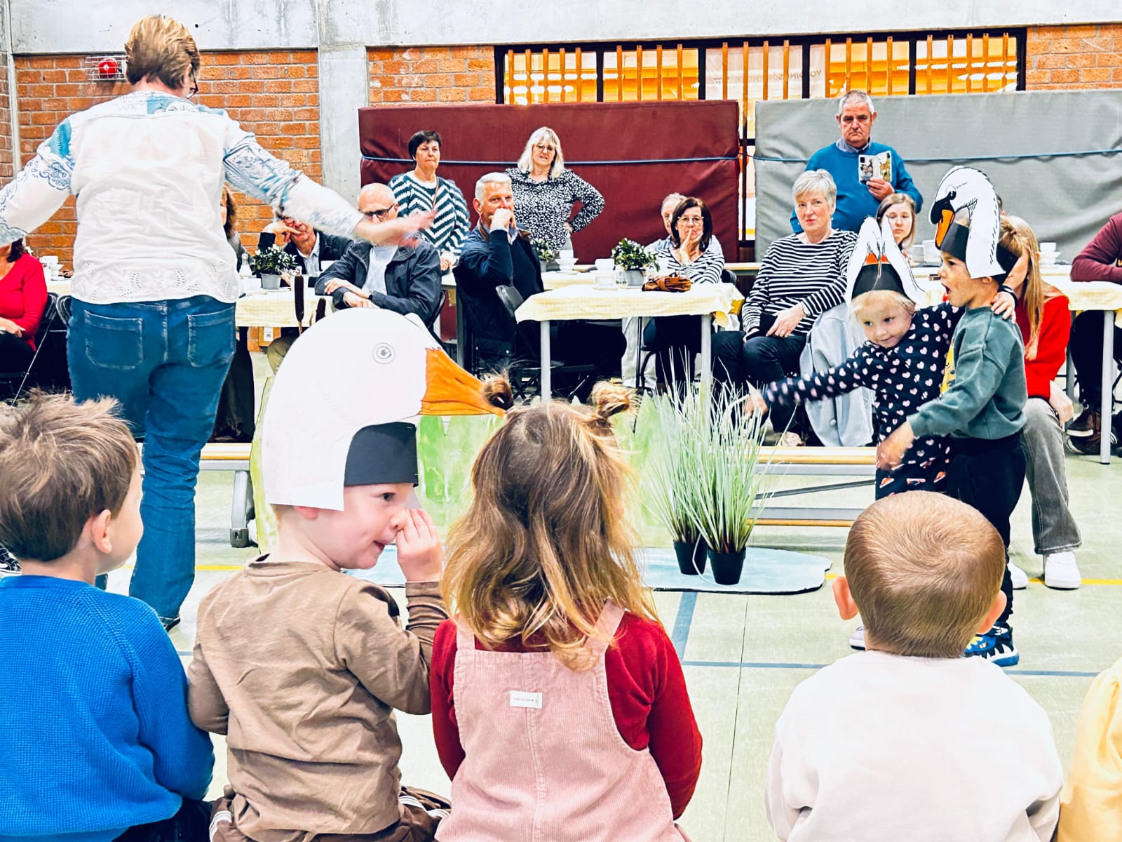 Het verhaal "het lelijke eendje wordt op diverse manieren (vertellen, voorlezen, tapijtpoppenspel) aangebracht. Elke kleuter wordt een diertje uit het verhaal. Samen brengen we dit in een toneeltje voor onze grootouders.