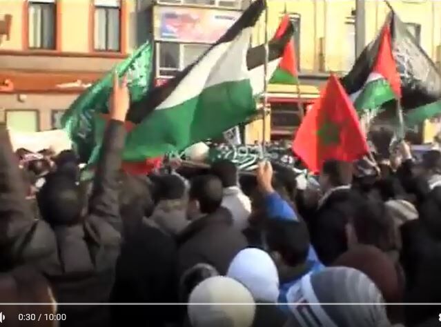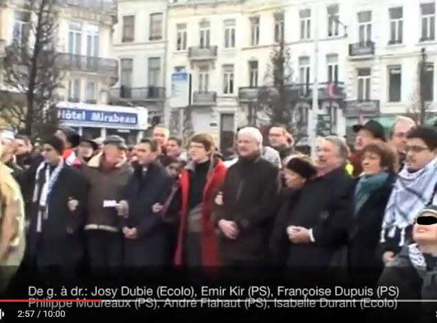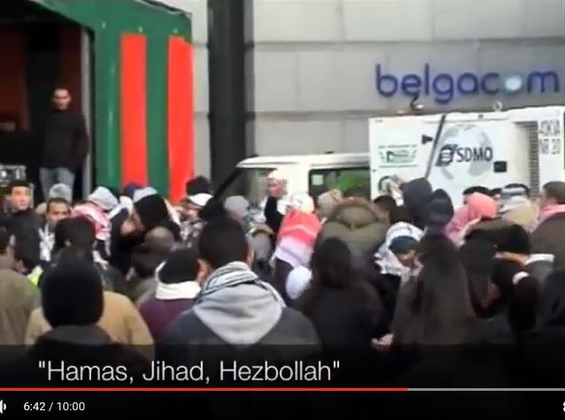 Zwarte jihad-vlaggen van islamitische terreurgroep 'Jabhat al-Nusra' (Syrisch filiaal van Al Qaeda), de bekende groene vlaggen van Palestijnse terreurorganisatie Hamas, vlaggen van de 'Al Aqsa Martelarenbrigades' en terreurgroep Hezbollah,... Schuimbekkende moslims die Israëlische vlaggen in brand steken... Leuzen 'Hamas, jihad, Hezbollah' die weergalmen onder goedkeurend oog van 'islamitische stewards' gehuld in fluo vestje van de radicaal-islamitische Turkse organisatie Milli Görus... Oh ja, en Belgische 'top-politici' die zich uitleven op deze gortige pro-jihad betoging in hartje Brussel! Dirk Van der Maelen (sp.a), Peter Mertens (PVDA), André Flahaut (PS), Emir Kir (PS), Philippe Moureaux (PS), Françoise Dupuis (PS), Josy Dubie (Ecolo), Isabelle Durant (Ecolo), Pierre Galand (PS),... Enkele beelden zeggen meer dan duizend woorden!