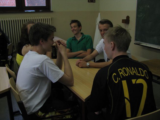 Hieronder een paar foto's van de Europese dag met de Finse school. Leerlingen uit Naantali, een kustplaatsje in het zuiden van Finland, kwamen op 8 mei een namiddag in de campus Sint-Jan discussiëren over de Europese Unie met leerlingen van 5 en 6 aso. Een korte, maar heel boeiende ontmoeting.