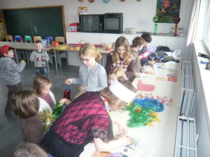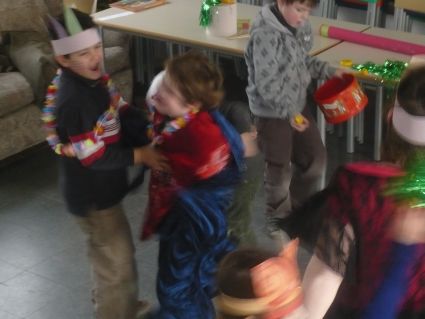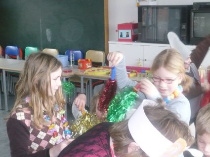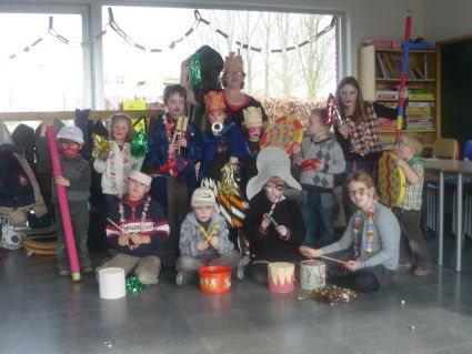Ook in de opvang hebben wij carnaval gevierd. Eerst hebben we zelf onze muziekinstrumenten gemaakt, daarna hebben we onze verkleedkledij uitgekozen, daarna hebben we ons ook nog gesminkt en om onze leuke dag af te sluiten hebben we nog gedanst. Kijk maar naar de foto's hoe leuk het was.