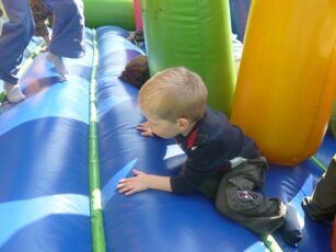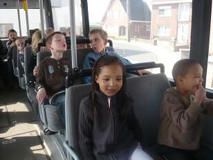 -Met z'n allen zijn we samen naar de kinderboerderij geweest. De bus is ons komen halen. -We hebben er vele werkjes mogen doen, zoals het hoort op de boerderij. -Eerst zijn we stro gaan halen om aan de paarden te geven. Dit hebben we met de kruiwagens gedaan. Af en toe zat er wel iets anders dan stro in onze kruiwagen, kijk zelf maar op de foto's. -Daarna hebben de grotere de stallen mogen mesten en de kleinste hebben geveegd. -We zijn ook bij het kalfje en de geitjes geweest. Er was zelfs een geitje die kunstjes deed. Het liep namelijk over onze gebogen rug, dat kan je ook zien op de foto's. -Na het vele werken hebben we een pauze genomen, met een koek en een drankje. En hebben we ook nog wat gespeeld. -En voor we naar huis terug kwamen, zijn we nog eens tot bij de konijntjes en de cavia's geweest. -Moe, maar tevreden zijn we dan met de bus naar de opvang terug gekeerd. -TIP: We hebben er niet alles kunnen zien, er was nog zoveel meer. Misschien kunnen de kinderen nog eens met mama en papa op bezoek gaan.