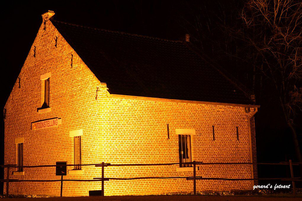 Deze avond heb ik een avond opname gemaakt van 't Mieleke uit As. In 1717 bouwde de gemeente een nieuwe molen, stroomopwaarts van de Oude Molen. Deze molen 't Mieleke genoemd, is van het onderslagtype. Dat betekent dat het water onder het rad door stroomt. Tot 1956 was 't Mieleke bewoond en in 1987 kwam het ter beschikking van de heemkundige en culturele vereniging "Sint-Aldegondiskring". Vandaag kan je in 't Mieleke het heemkundig museum bezoeken. Het pittoreske parkje dat de molen met het molenhuis verbind, is de ideale plaats voor een zomerse picknick aan het water. Heet Mieleke is te vinden Andre Dumontlaan 19 te As. Op de foto is de watermolen niet te zien, heb een vooraanzicht van het gebouw genomen.