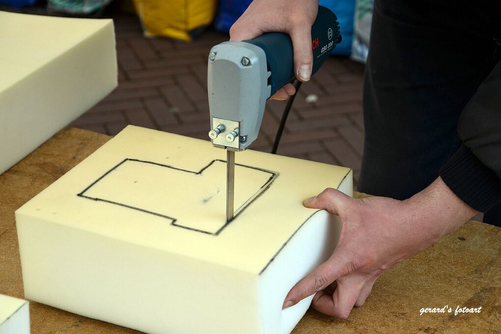 Zaterdag is de dag dat mijn zoon en ik naar de markt gaan in Weert. en was op zoek naar een bescherming voor mijn camera, ik doe mijn camera meenemen op de vrachtwagen, en wilde mijn kostbaar iets tegen alles beschermen, vandaar op foto 1 een soort van spons wat op maat gemaakt wordt door de verkoper/markt kramer. Dit wordt op een zeer nauwkeurige en met volle aandacht op maat gemaakt. Foto 2 toont het eind resultaat, waarop ik in de toekomst mijn camera veilig in kan opbergen in de vrachtwagen. Een hele geruststelling.