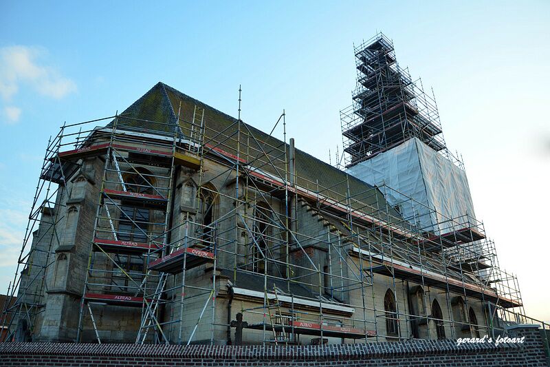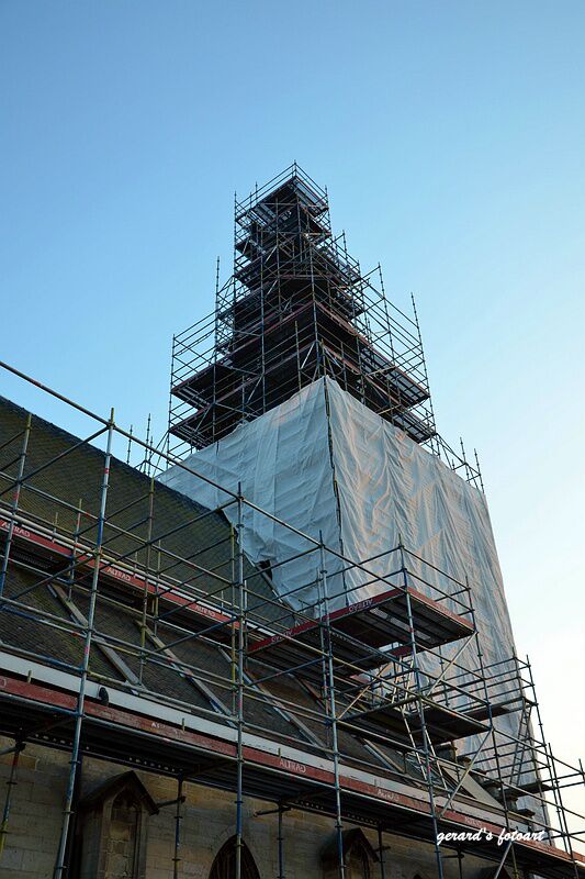 Dinsdag en zag een kerk in de buurt ingepakt, deze zal voor herstelling zo ingepakt zijn om de omwonenden niet teveel overlast te bezorgen. Hopelijk voor de kerkgangers dat het resultaat mag gezien worden.