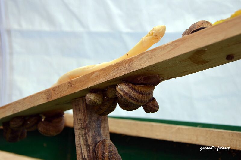 Vandaag een bezoekje gaan brengen aan een asperge bedrijf, best de moeite om eens achter de schermen van een mooi land en tuinbouw bedrijf te gaan kijken naar deze lekkernij. Heb een sorteermachine, een culinaire eetstand met slakken en een geschminkt meisje vast gelegd op de foto.