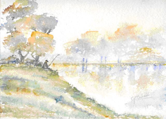 Klik op de afbeelding om de link te volgen Deze 'aquarelschets' heb ik gemaakt in Honfleur vlakbij de 'Pont de Normandie' waar de Seine uitmondt in de Noordzee.