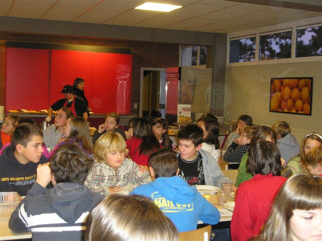 We hebben hier al lekker gegeten. Alles is hier heel lekker. We zijn hier nu al 3 dagen en we zijn al 3 keer naar de zee geweest met Mevr. Schoeters en Mr. Palmans en soms ook met de hele groep tesamen. Gelukkig is er een jongens en een meisjesgang. Mr. Palmans is al weg en er komt nog een fuif de donderdag maar dan is Mr. Van den Eynde DJ.