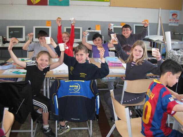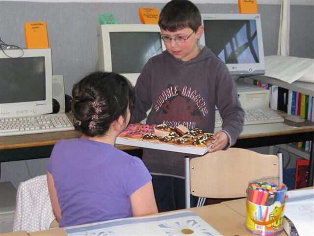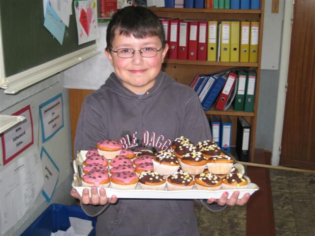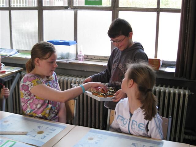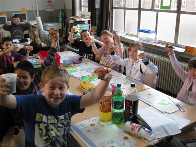 Op 17 april wordt Emrah 10 jaar. Terwijl wij gisteren in een auto rondtolden, bakte Emrahs'mama heerlijke cakejes. Met nog een bekertje limonade erbij vierden we dit vandaag in de klas. Proficiat Emrah!