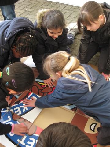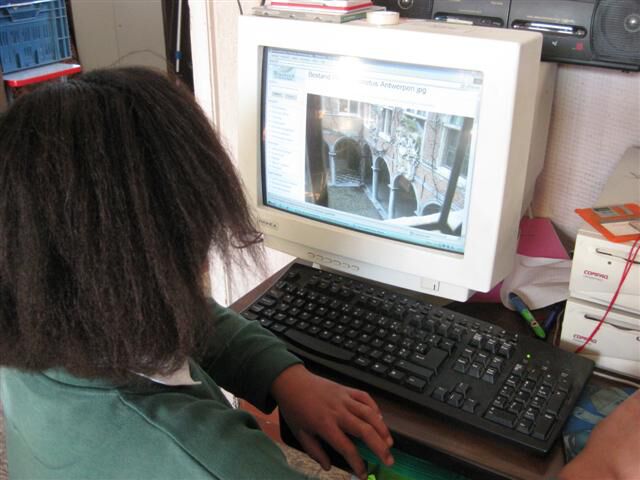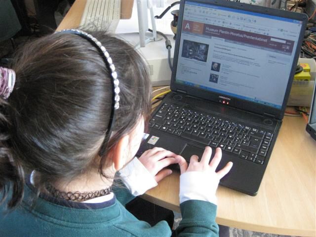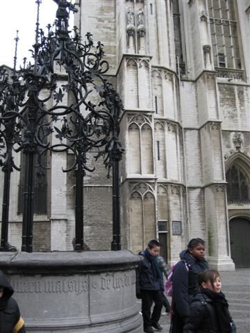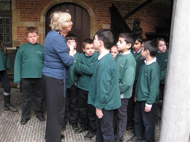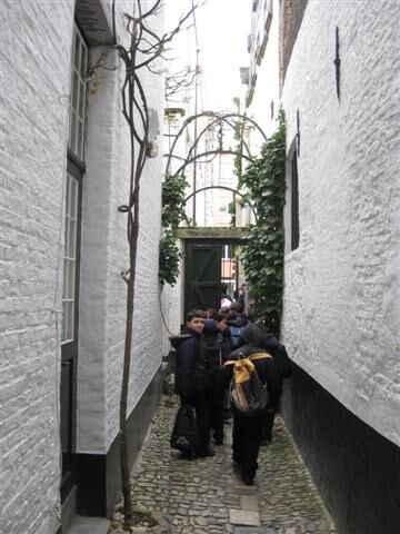 Op weg naar het museum Plantin-Moretus maakten we van de gelegenheid gebruik om ook even langs de Vlaaikesgang, de Handschoenmarkt, ... te wandelen. En je mag het gerust weten mama's en papa's: de gids was erg tevreden over onze houding in het museum!
