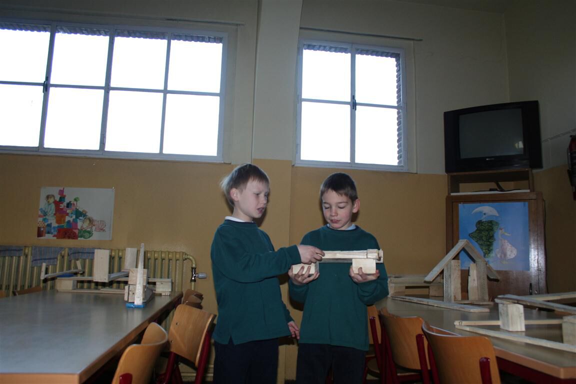 Onze timmerwoede en zaaghobby is bekoeld . Hier zijn de resultaten met de uitleg . Joël en Divine maakten een leger vliegtuig . Olivier en Alex toverden een modern vrachtschip . Senne en Jens ontwikkelde een zitbank voor oude meesters of jonge koppeltjes . Yakhouba en Sven vonden de eerst houten PSP uit . Ook Bilal en Sergei gingen voor een zitbank . De meisjes dromen van huisje Weltevree . Bij Chams en Maria herken je reeds een mooie woning . Nisrine , Hellen en Darlysha hebben een huis in aanbouw .