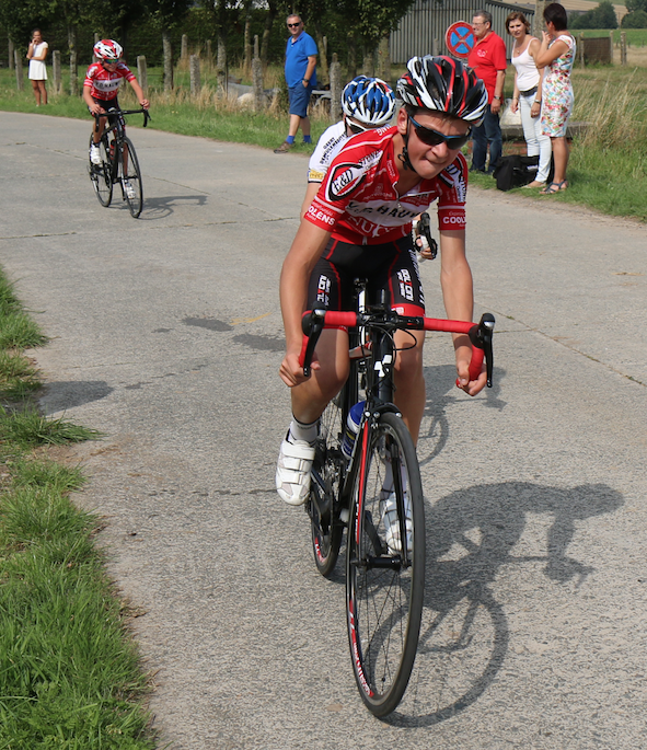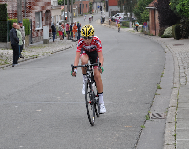 Mooi weer ook vandaag en dus trok er nog wat volk naar Perwez voor de laatste aspirantenwedstrijd van het seizoen. Zo ook Jordy die zijn stalen wegros nog eens beklom alvorens deze weg te hangen tot na de winter. De organisatie bleek dit jaar wat aan de flauwe kant, geen micro noch voorrijder, dit laatste was al helemaal in zeker op een wedstrijd waar vorig jaar ettelijke keren een auto van het parkoers moest gehaald worden. Ij de ASP13 stonden er 20 renners aan de start waaronder 13 met WBV-licentie, een tje daarvan dus onze Jordy. In de eerste ronde een valpartij waardoor de groep uit elkaar viel, maar even later liep alles weer samen. Na 4 ronden trok Oostvlaams kampioen Ryan Seghers eens stevig door en hij was weg met 2 kompanen. Jordy had zich wat te ver laten uitzakken op de smalle klim en zat gevangen, hij kon zijn wagonnetje niet aanpikken, dan maar achtervolgen met ene groep van in totaal 8 renners. Ryans Seghers liet halfkoers zijn metgezellen in de steek en dubbele bijna de helft van de renners, zoniet het groepje van Jordy dat finaal om de 5de plaats mocht sprinten. Hij bolde als 10de over de streep en sluit zo zijn wegseizoen af met een extra top-10 notering.